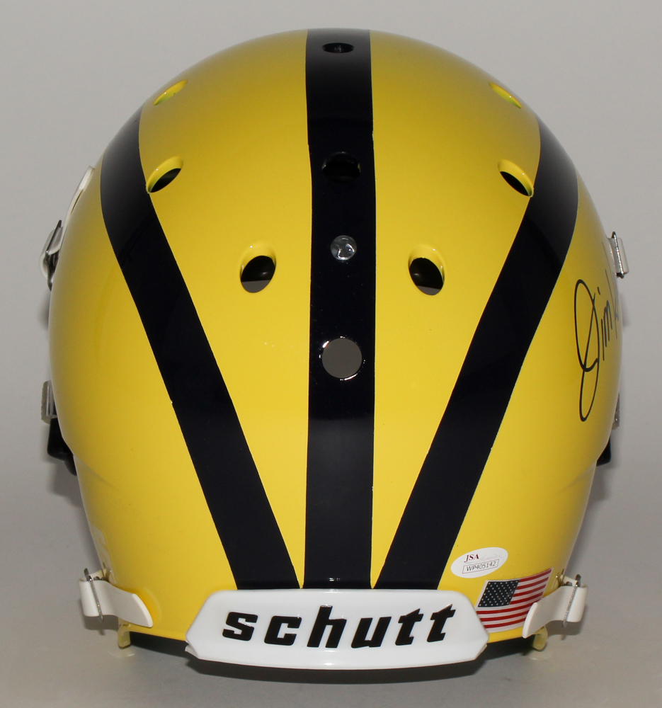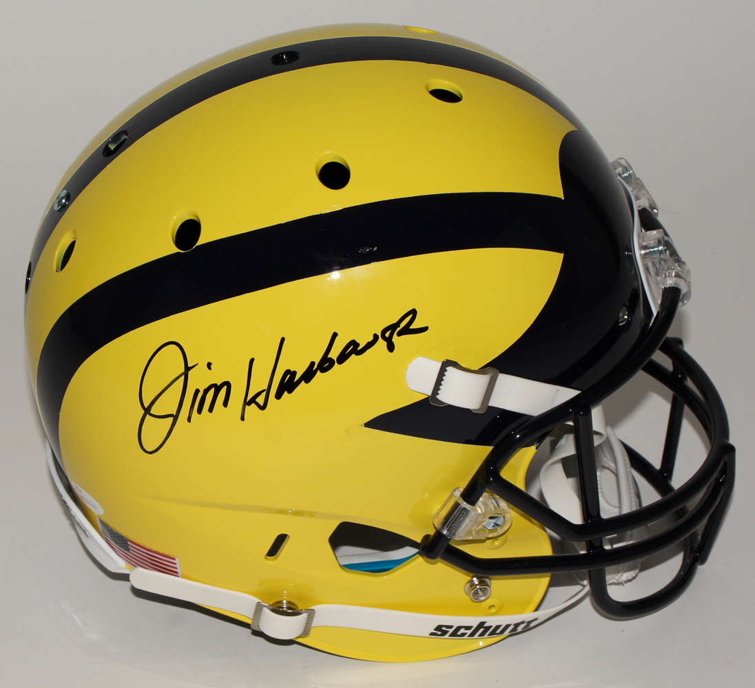 Jim Harbaugh Signed Michigan Wolverines Custom Matte Yellow Full-Size Helmet (JSA COA)