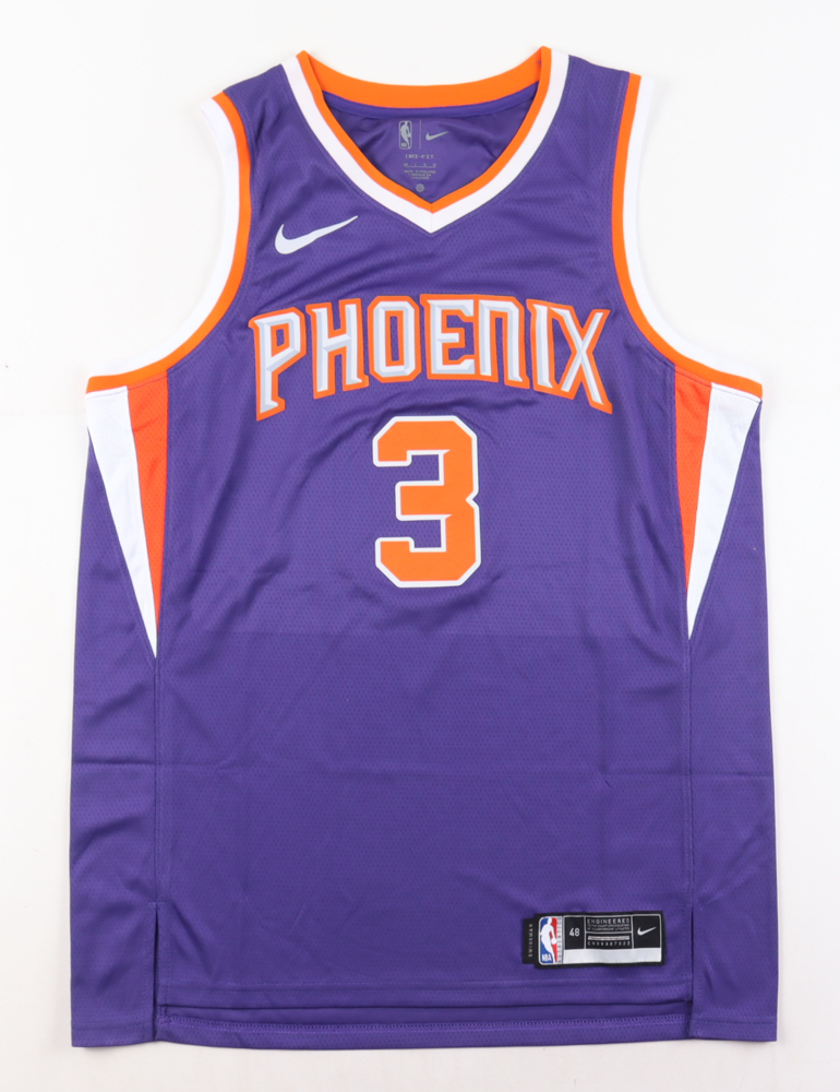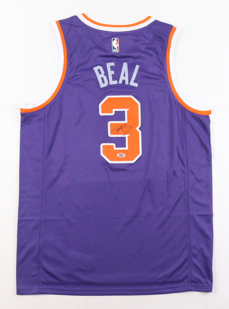 Nike jersey. Everything is pressed on, size 48. Hand-signed by Bradley Beal. Please note, there is a stray ink mark on the reverse number.
