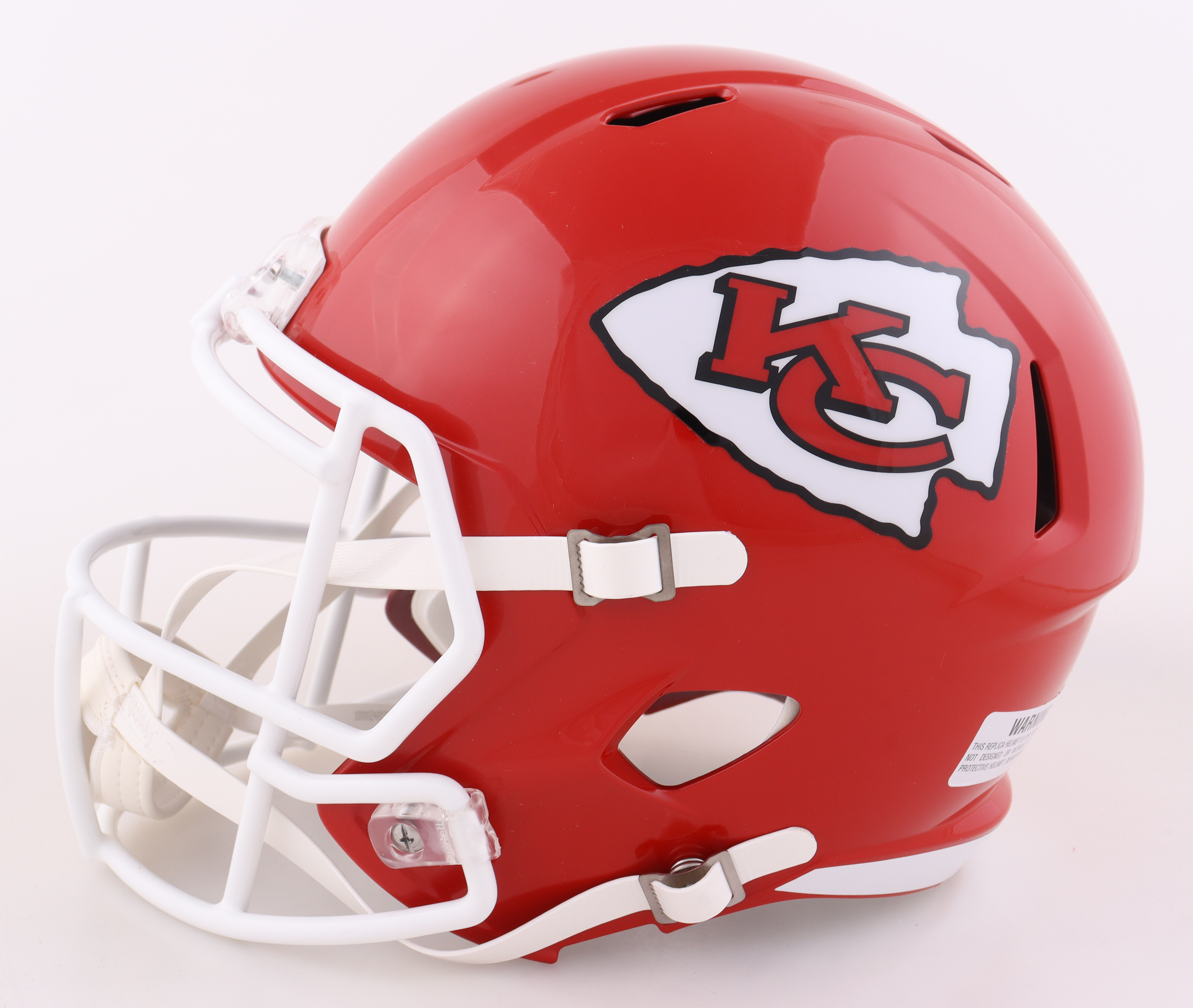 Riddell Kansas City Chiefs full-size speed replica helmet. Hand-signed by Patrick Mahomes II.