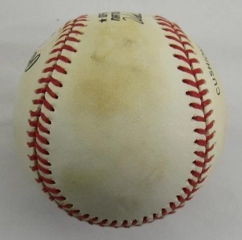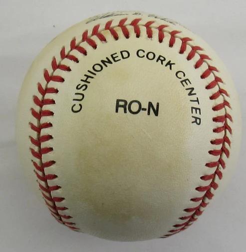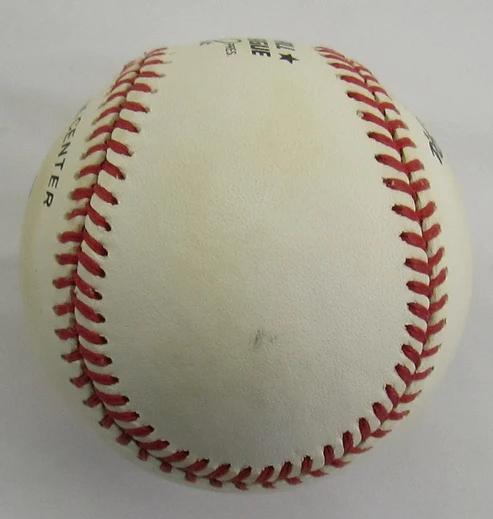 Rawlings Official National League baseball. Hand-signed by Hank Aaron (Milwaukee / Atlanta Braves, HOF, D. 2021). Please note, baseball has toning; see photos for more detail.