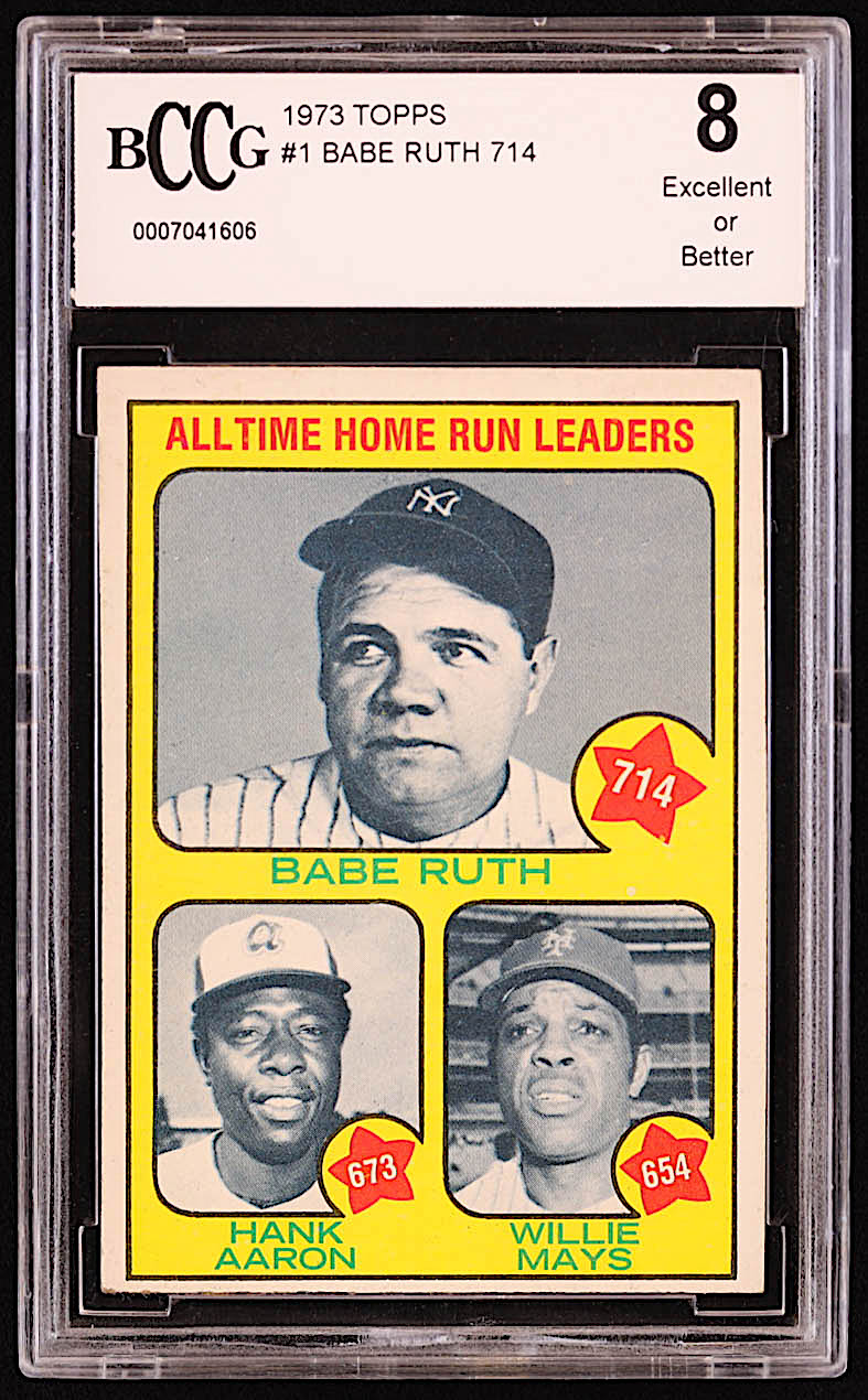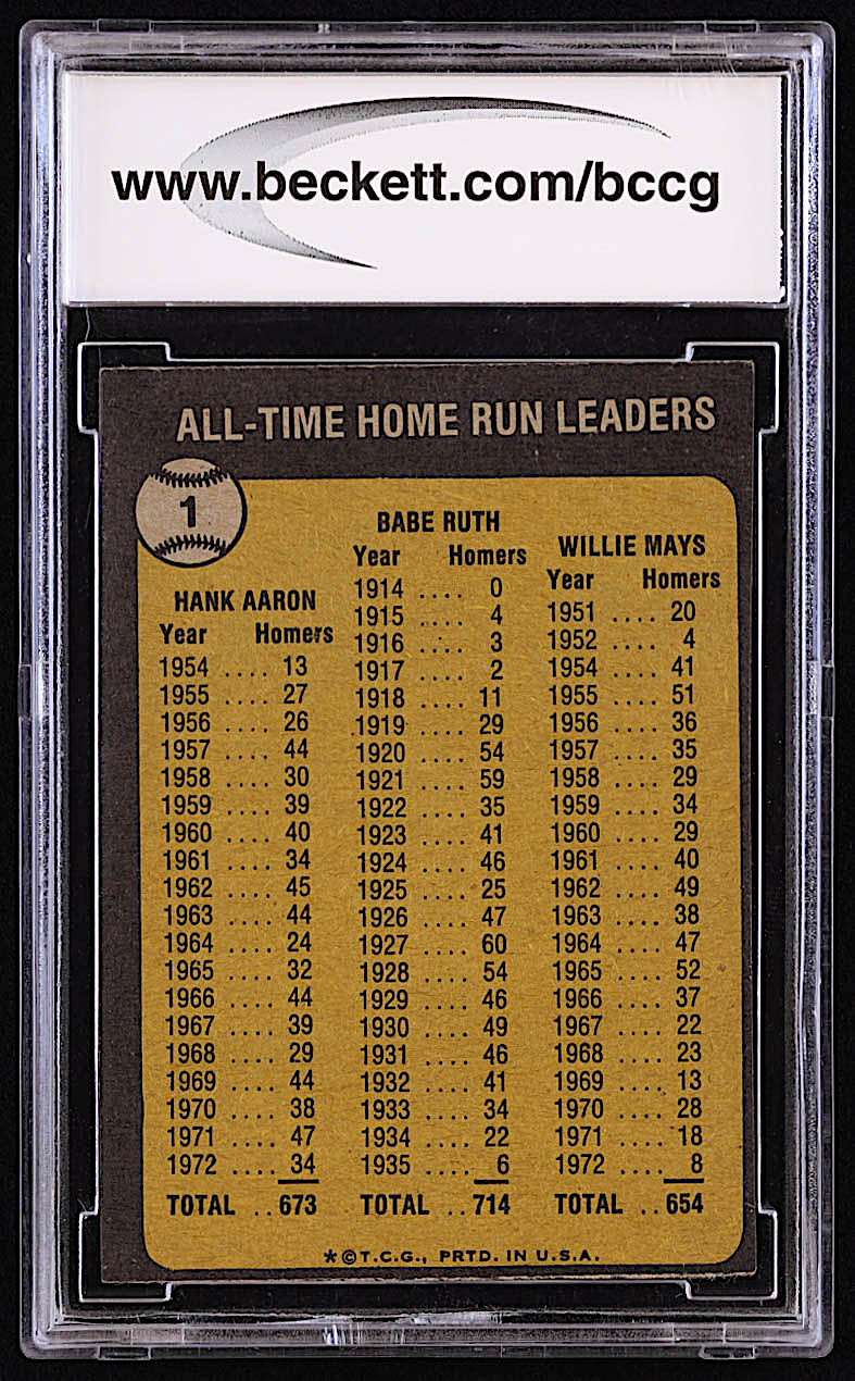 Babe Ruth 714 / Hank Aaron 673 / Willie Mays 654 1973 Topps #1 / All-Time Home Run Leaders (BCCG 8)