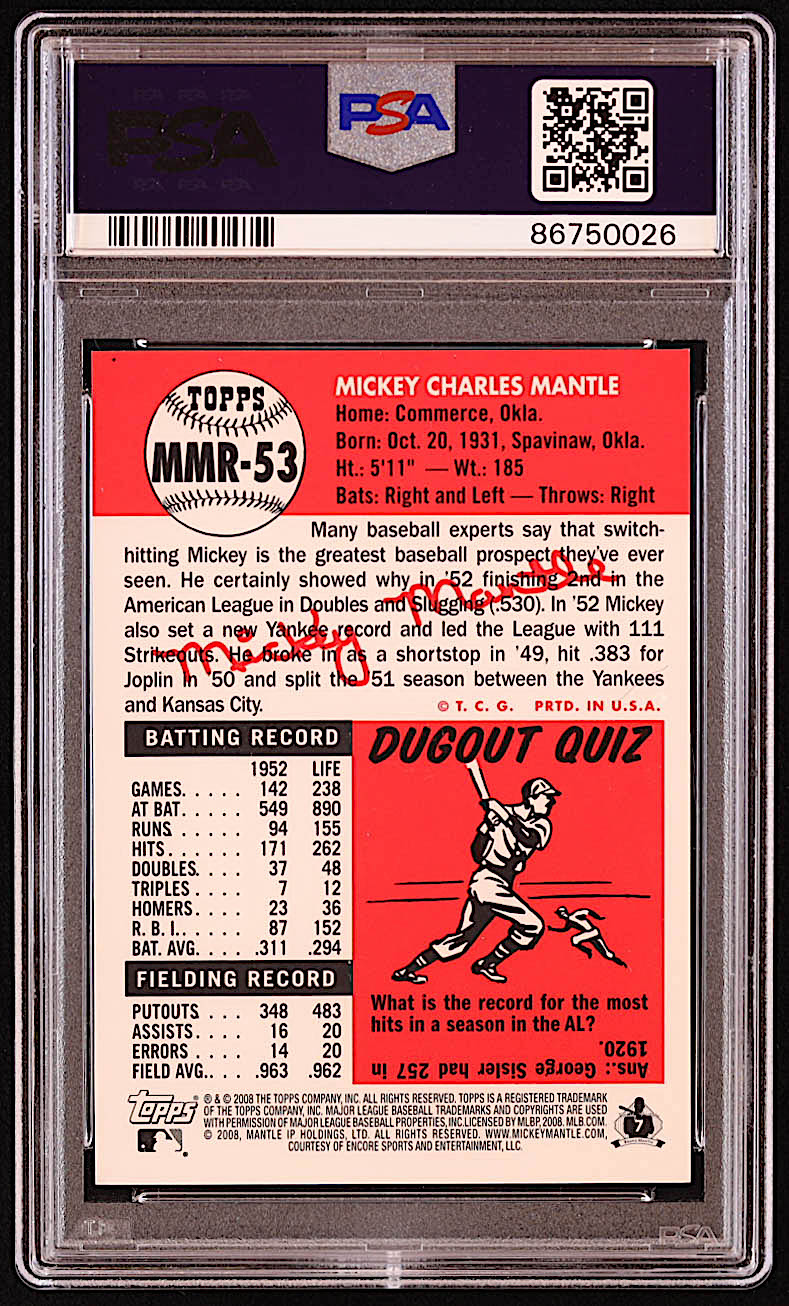 Mickey Mantle 2008 Topps Factory Set Mickey Mantle Gold #MMR53 / 53T (PSA 9)