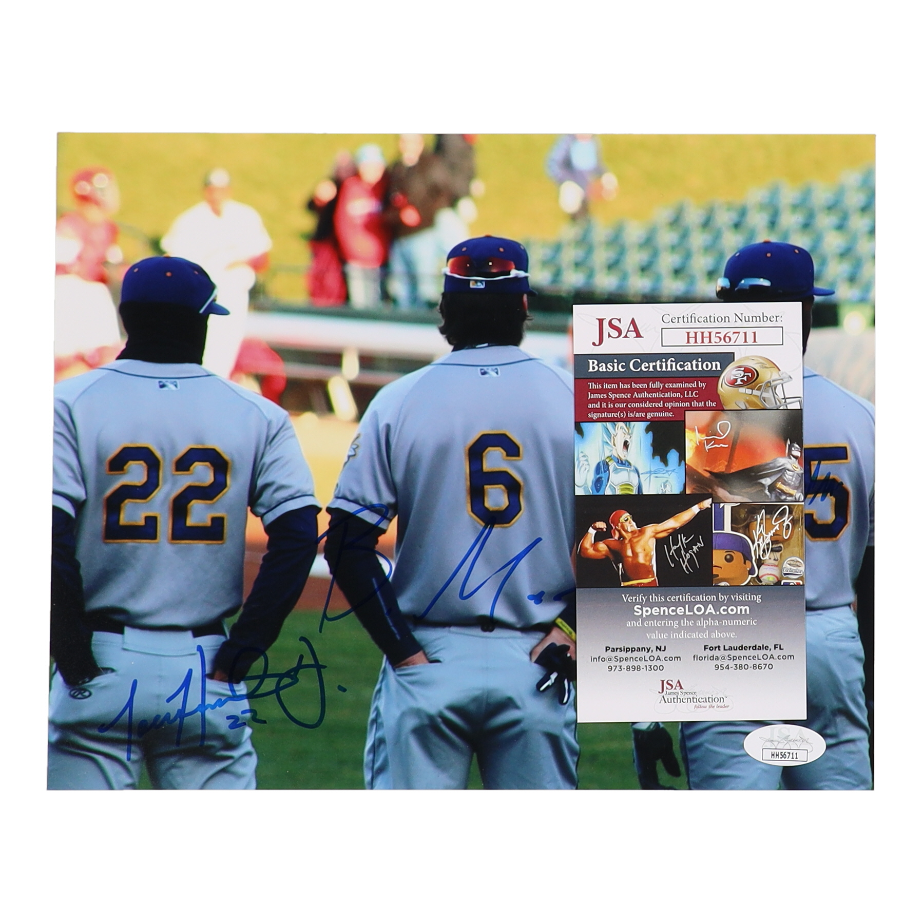 Photo measures 8" x 10" in size and has been hand-signed by Jo Adell, Brandon Marsh & Torii Hunter Jr. (Los Angeles Angels).