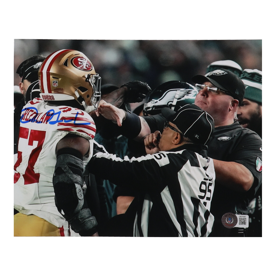 Photo measures 8" x 10" in size. Hand-signed by Dre Greenlaw (San Francisco 49ers).