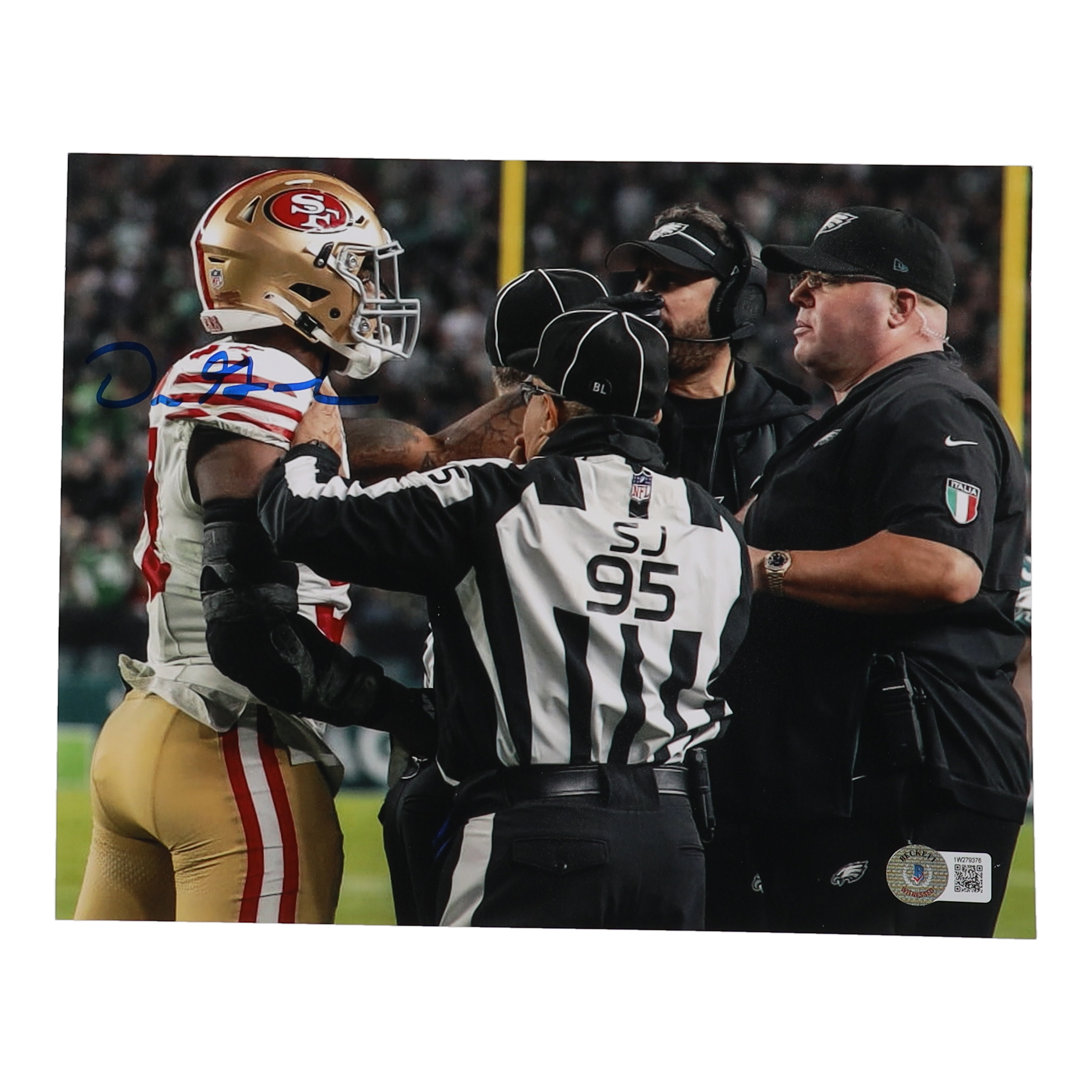 Photo measures 8" x 10" in size. Hand-signed by Dre Greenlaw (San Francisco 49ers).