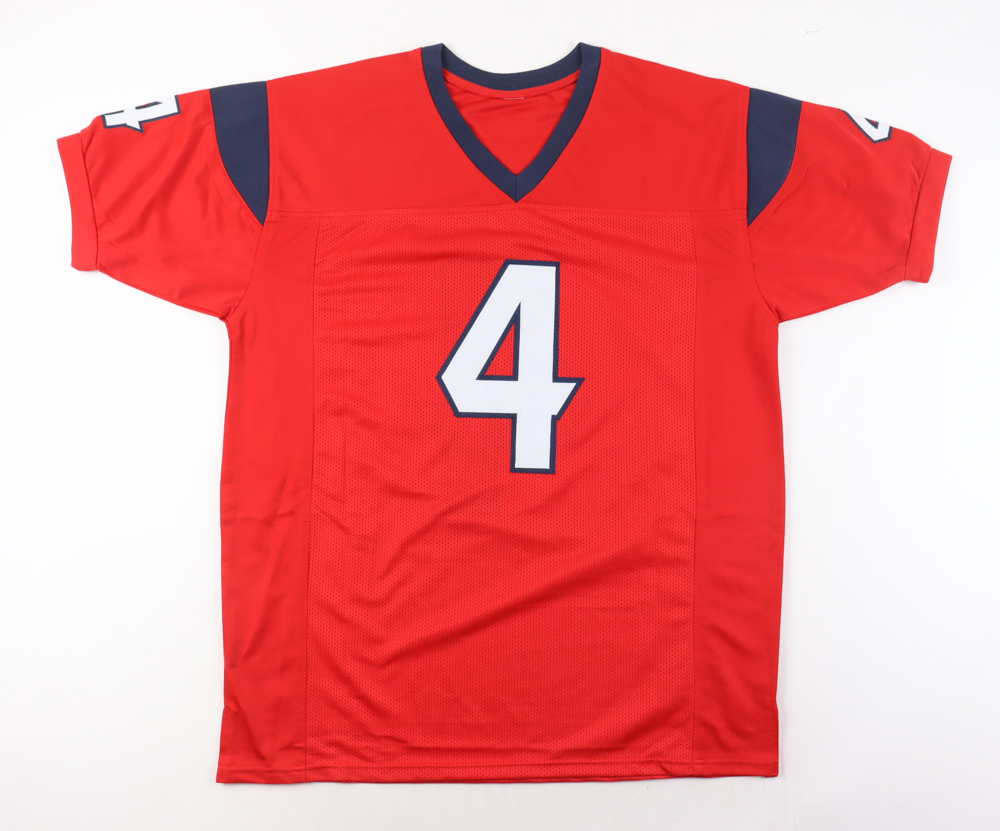 Custom jersey. Everything is sewn on, size XL. Hand-signed by Deshaun Watson.