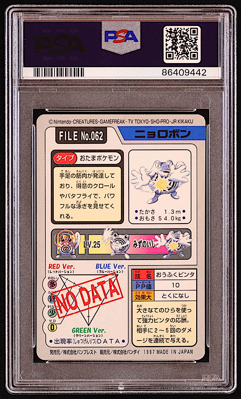 Poliwrath 1997 Pokemon Bandai Carddass Part 3 and 4 #62 (PSA 5)