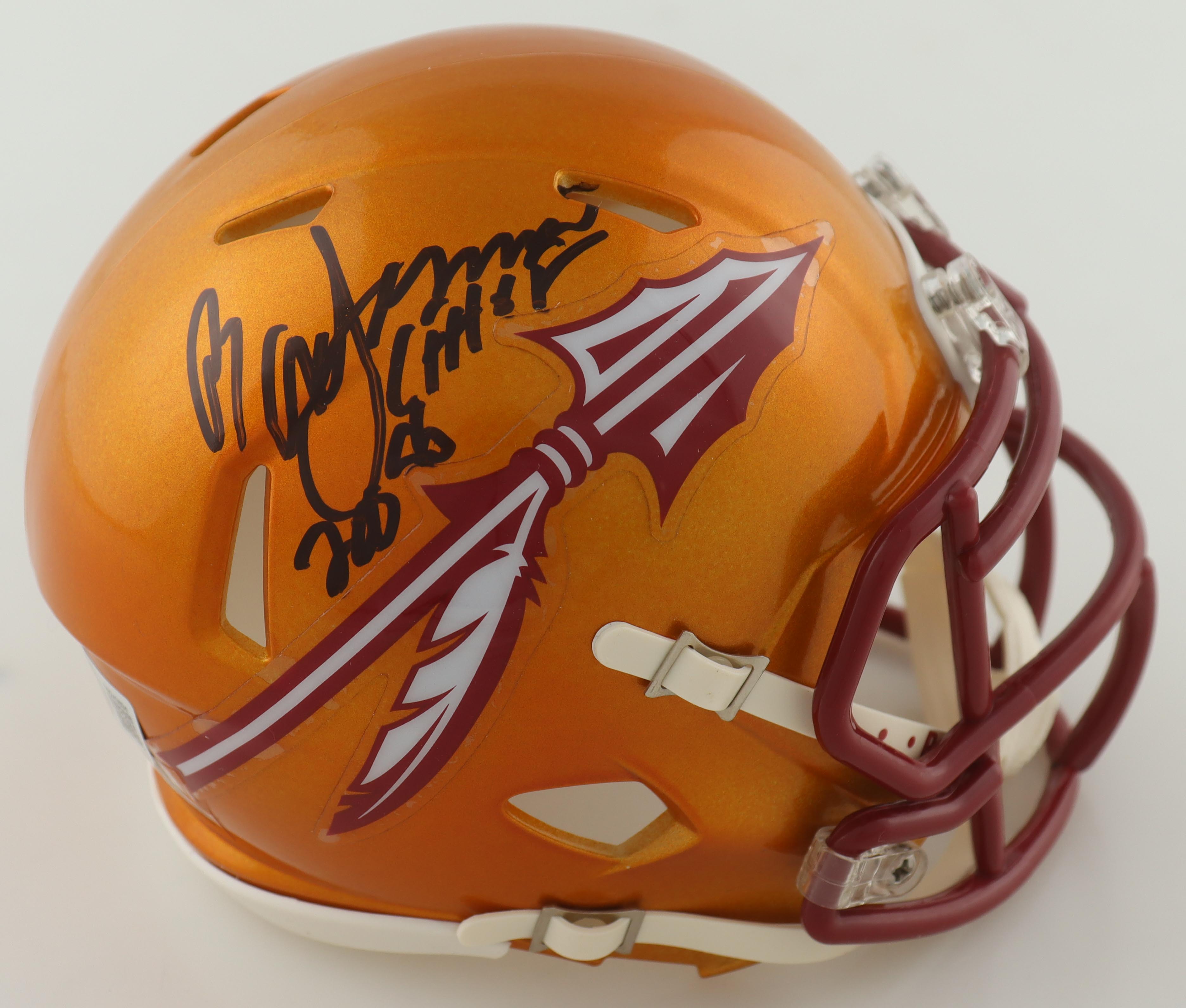 Riddell Florida State Seminoles Flash Alternate Speed mini helmet. Hand-signed and inscribed by Ron Simmons.