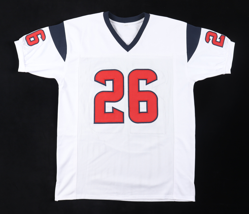 Custom jersey with everything sewn on, size XL. Hand-signed by Lamar Miller.