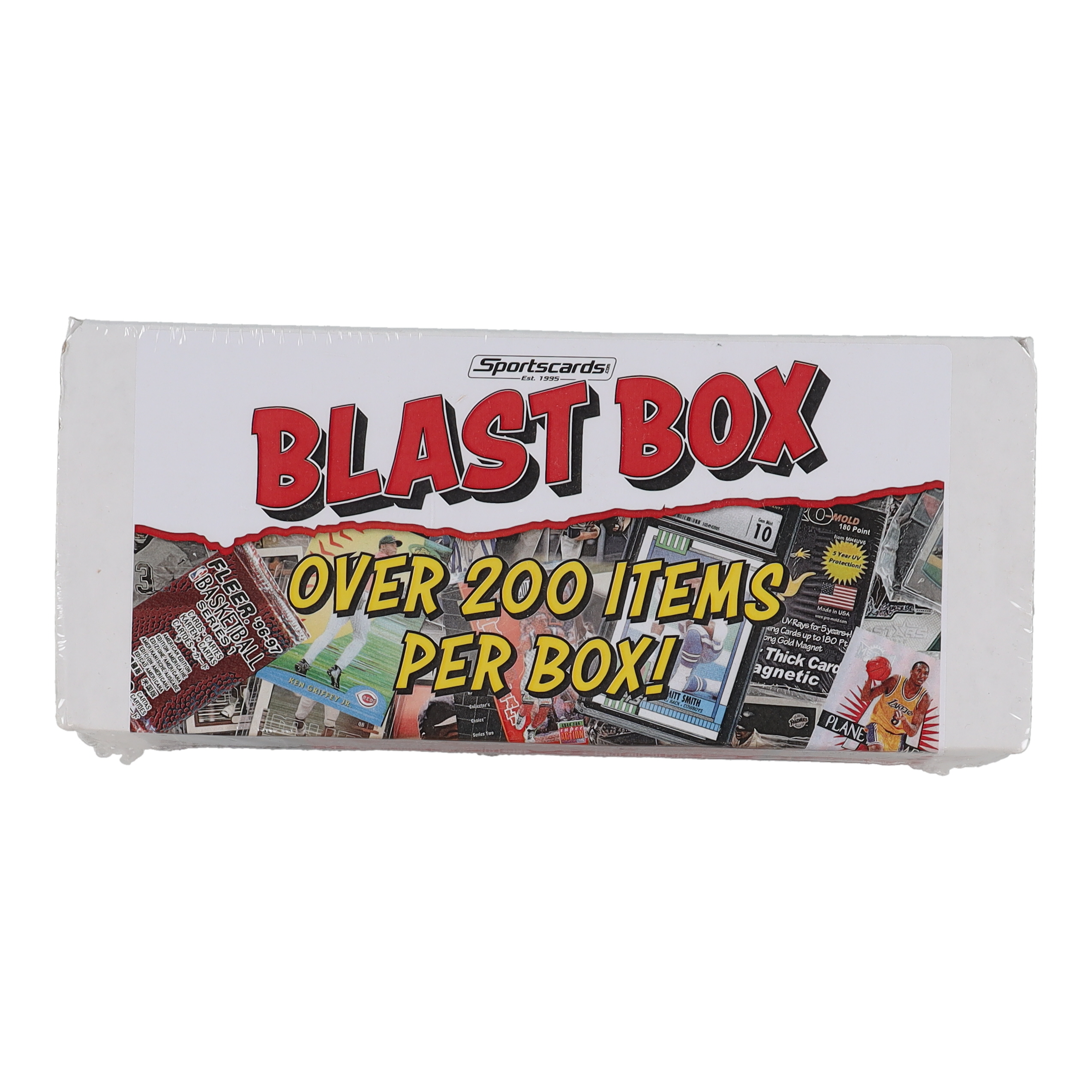 The Blast Box contains a ton of great stuff for your card collection! You get a little bit of everything in each box plus a chance at a big hit. Each box has the following items (Trading Cards & New Card Supplies)