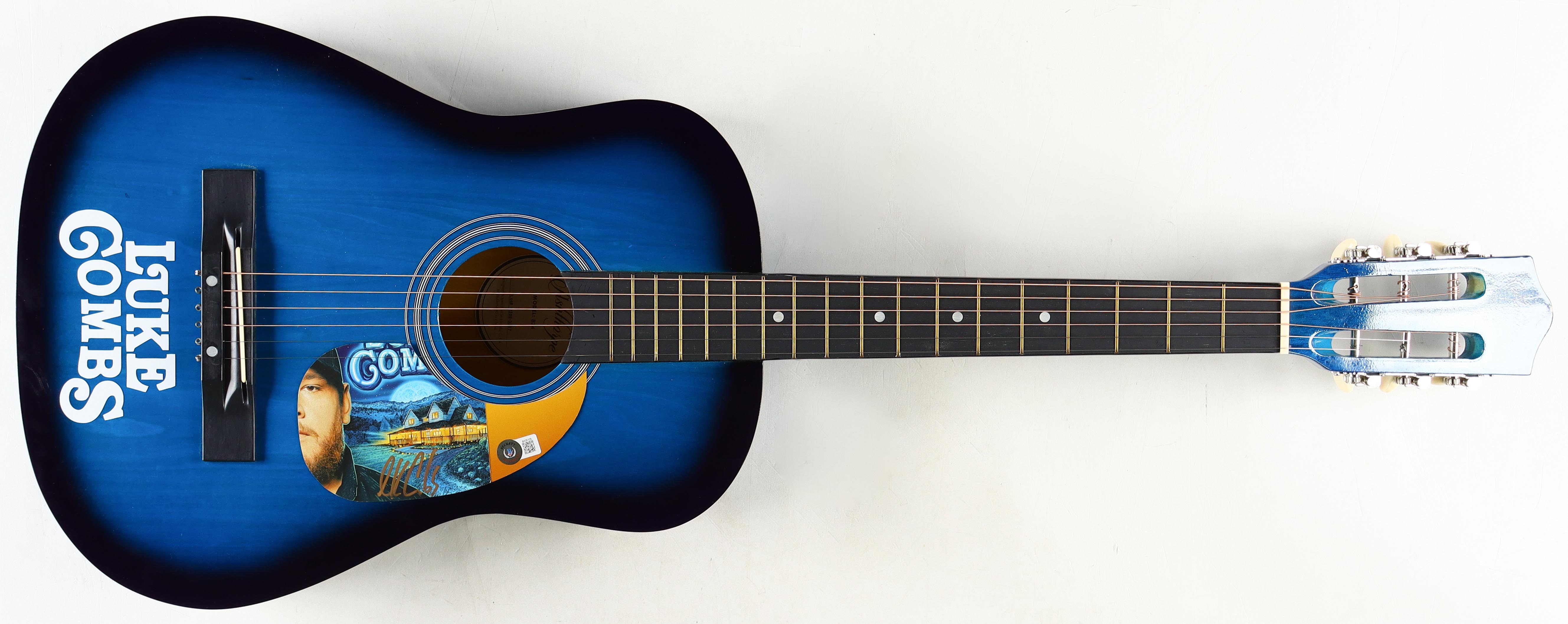Acoustic guitar measures approximately 39" in length and has been hand-signed on the pick-guard by Luke Combs.