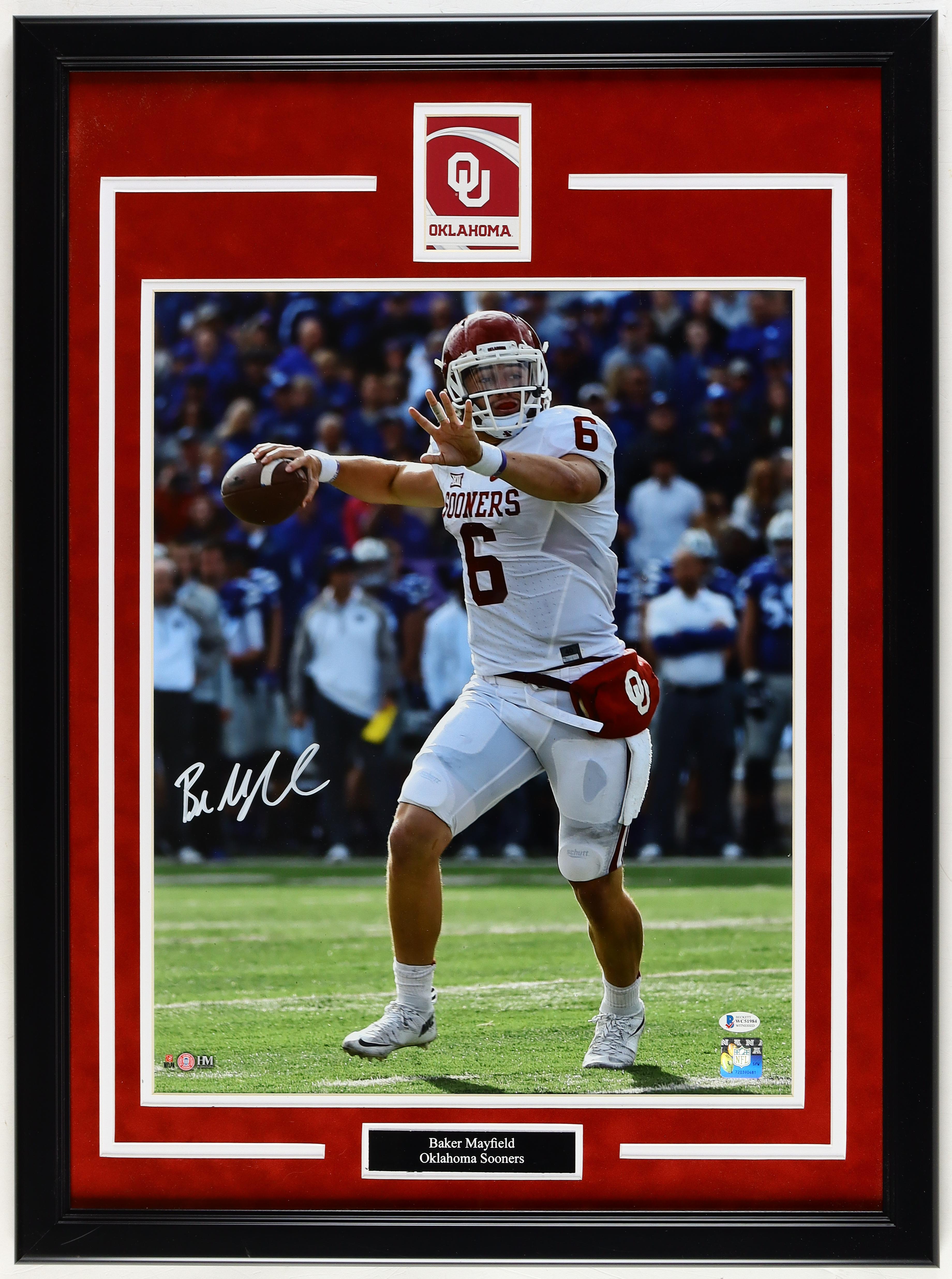 Baker Mayfield Signed Oklahoma Sooners Custom Framed Photo Display (Beckett)