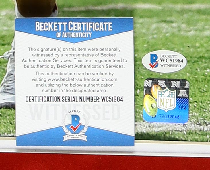 The autograph includes an official Beckett Authentication Services serially-numbered hologram and matching COA for authenticity purposes. The signing of this item was witnessed by Beckett.