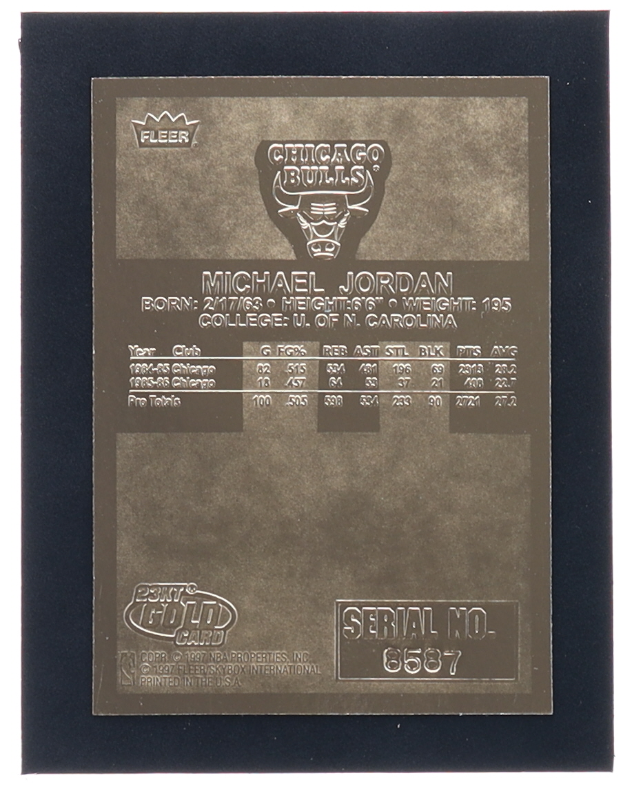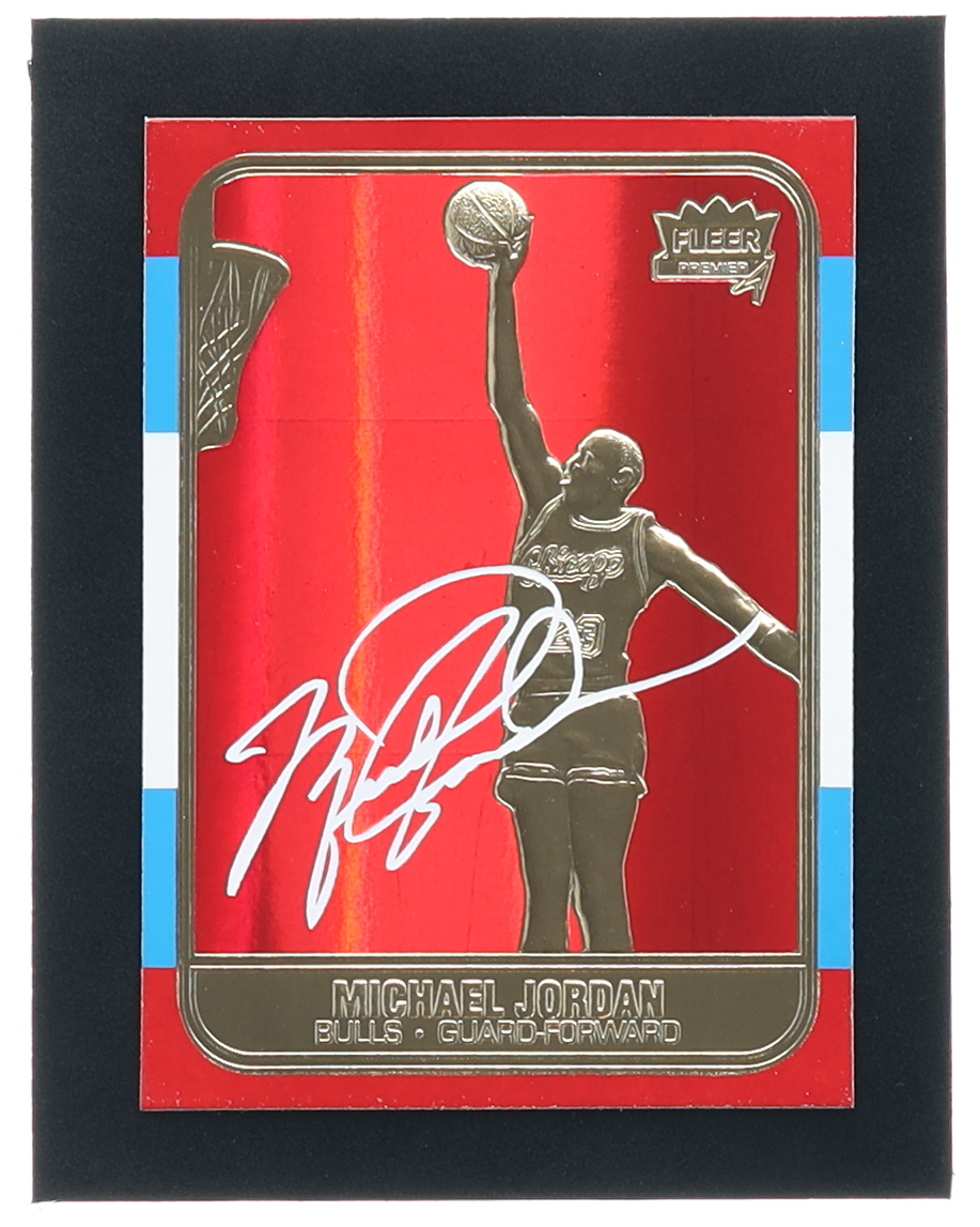 Michael Jordan 1997 Fleer Premier Signature Series Red Holo Refractor 23Kt Gold Card #8587