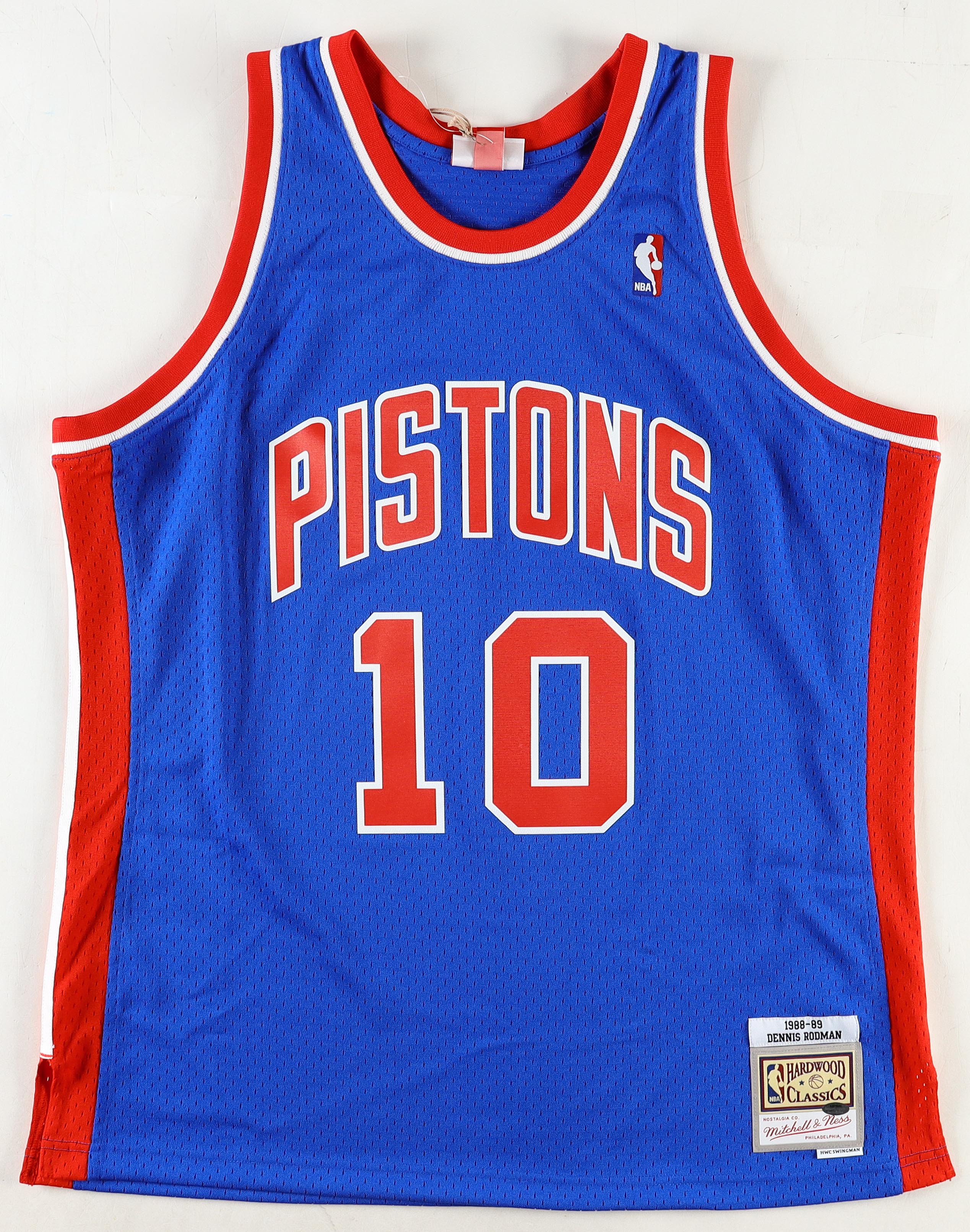 Mitchell & Ness jersey. Everything is sewn on, size XL. Hand-signed by Dennis Rodman (HOF).