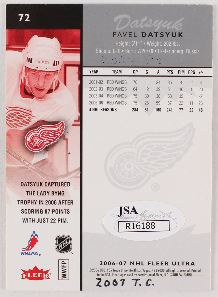 Pavel Datsyuk Signed Custom Plaque Display (JSA COA)