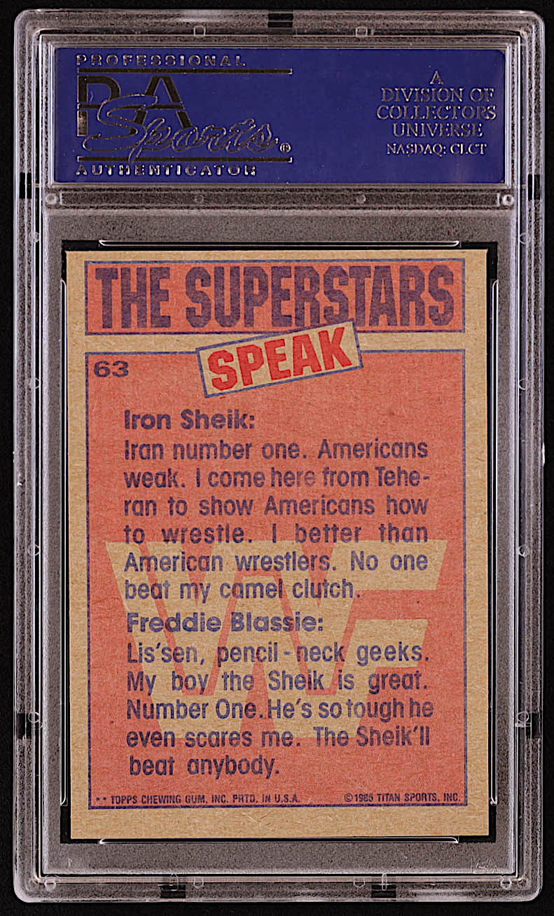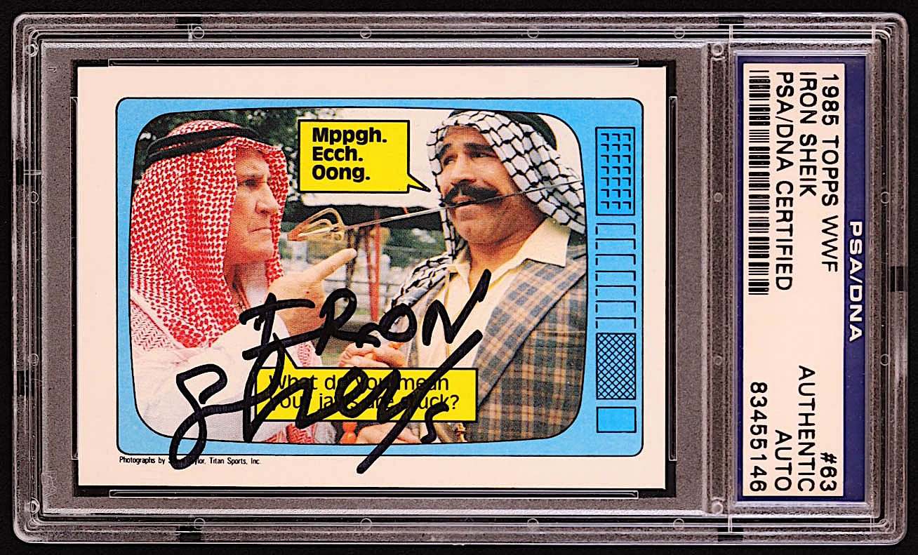 The Iron Sheik Signed 1985 Topps WWF #63 Mppgh Ecch Oong. SS (PSA)