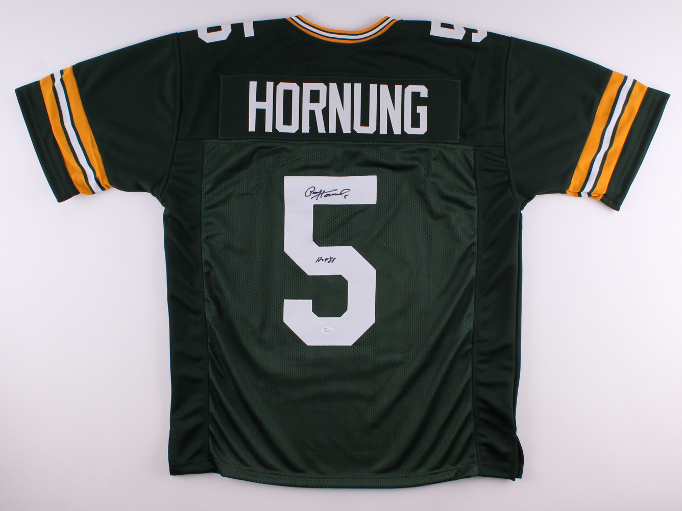 Custom on-field style jersey. Everything is sewn on, size XL. Hand-signed in black felt-tip pen by Paul Hornung (HOF).