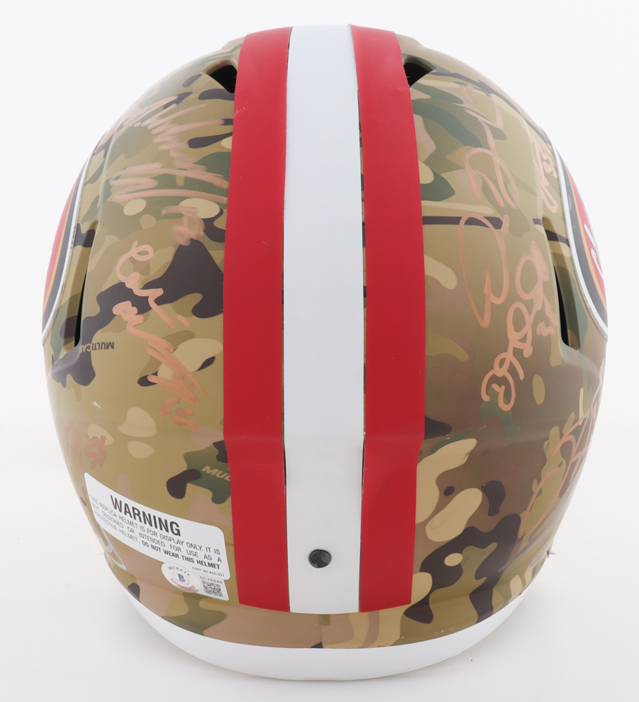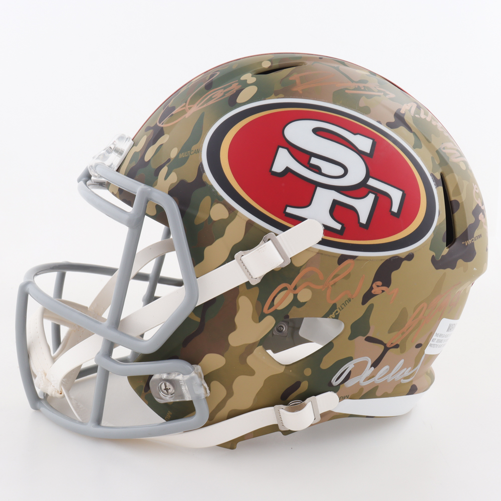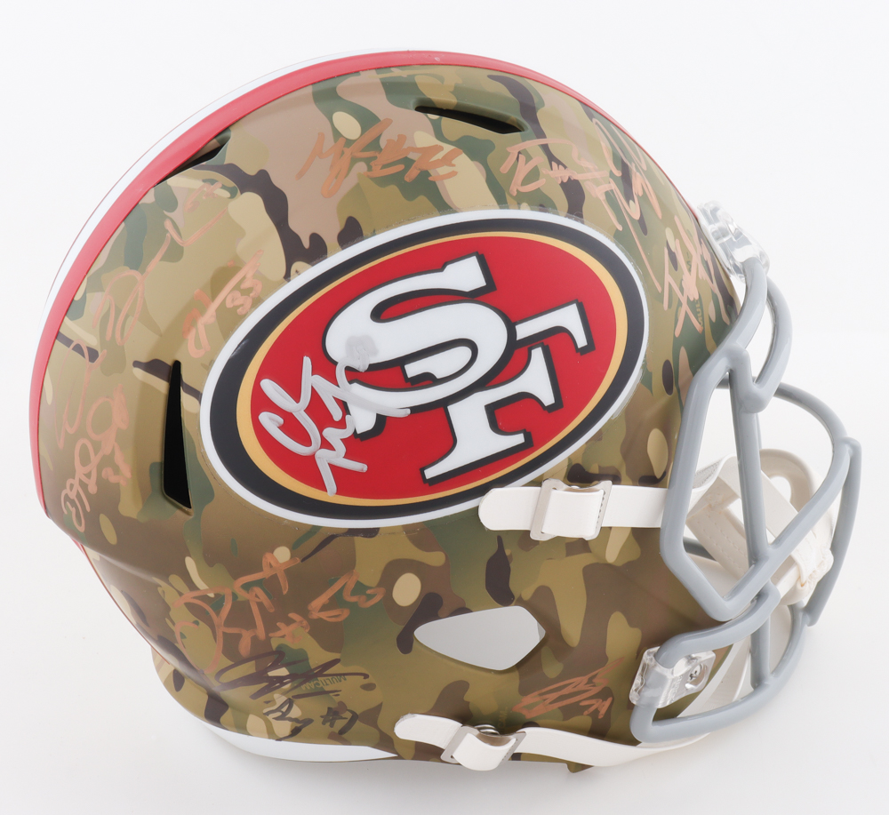 49ers Full-Size Camo Alternate Speed Helmet Signed by (18) With Christian McCaffrey, George Kittle, Fred Warner, Dre Greenlaw (Beckett)