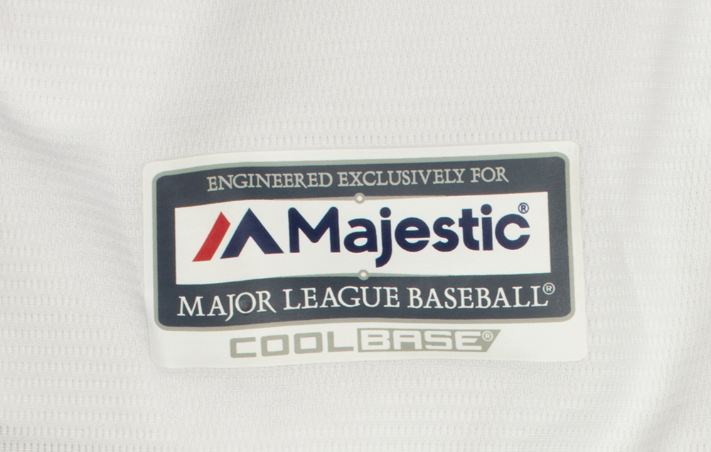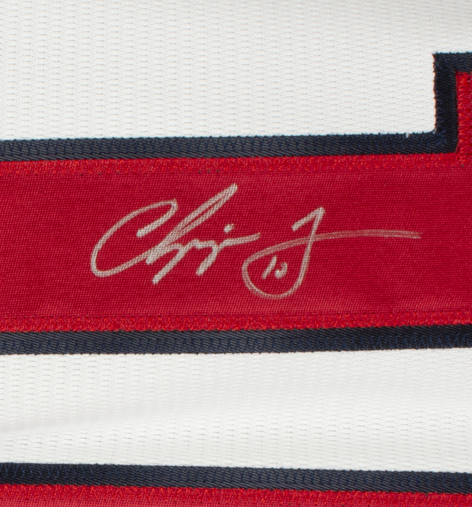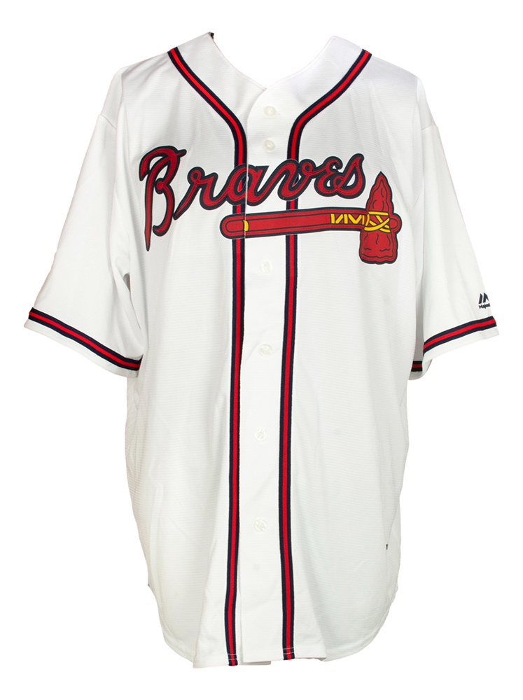 Majestic Cool Base style jersey. Everything is sewn on, size XL. Hand-signed by Chipper Jones (Atlanta Braves, HOF).