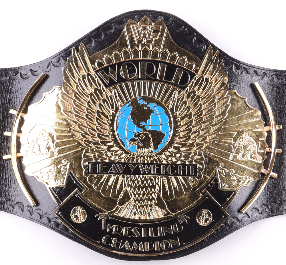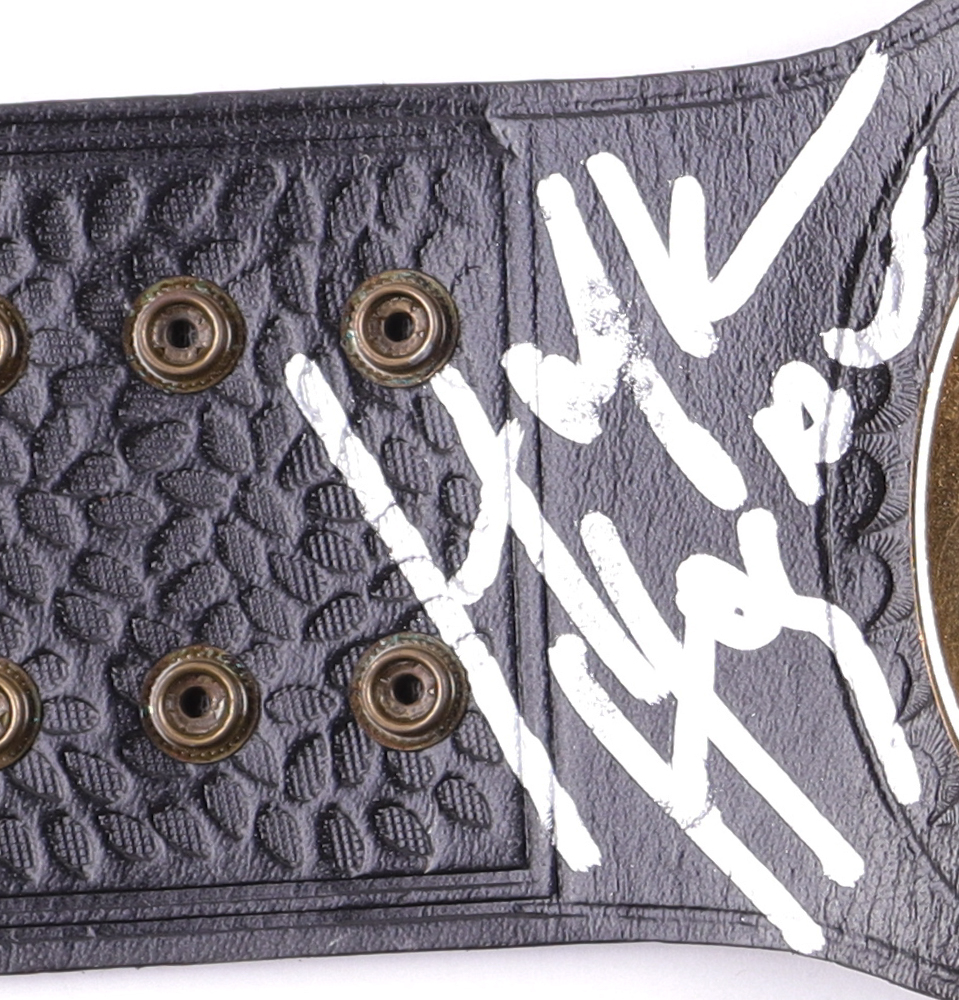 Replica WWE World Heavyweight Championship Belt measures approximately 48" in length. Hand-signed by Hulk Hogan (HOF). Please note, the autograph is scuffed.