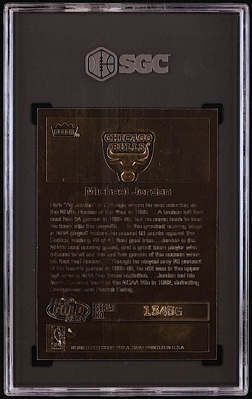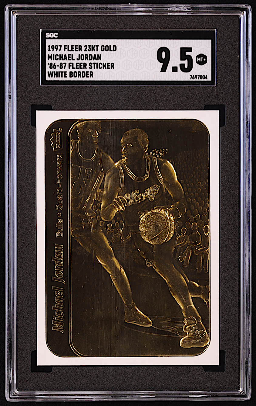 Michael Jordan 1997 Fleer 23KT Gold White Border / '86-87 Fleer Sticker (SGC 9.5)
