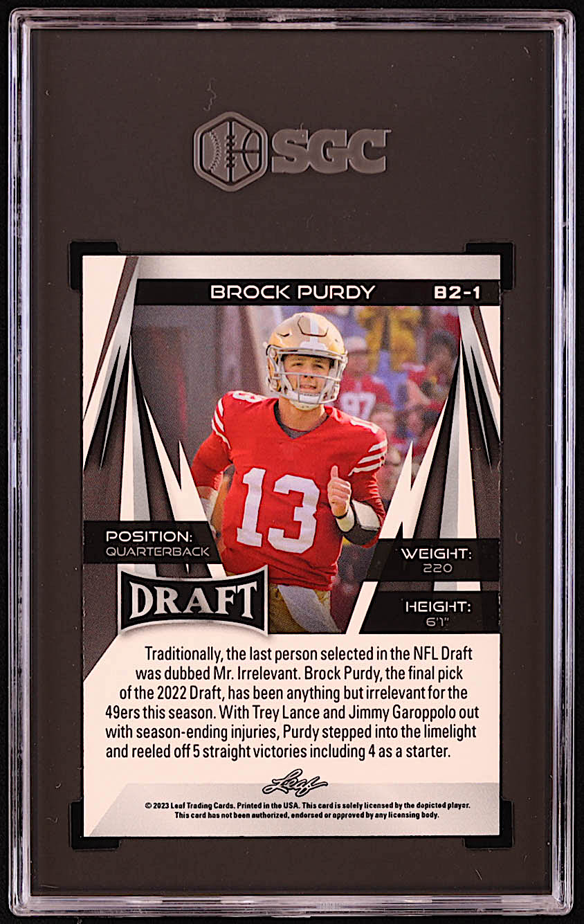 Brock Purdy 2023 Leaf Draft Base Version 2 Red #B21 (SGC 10)