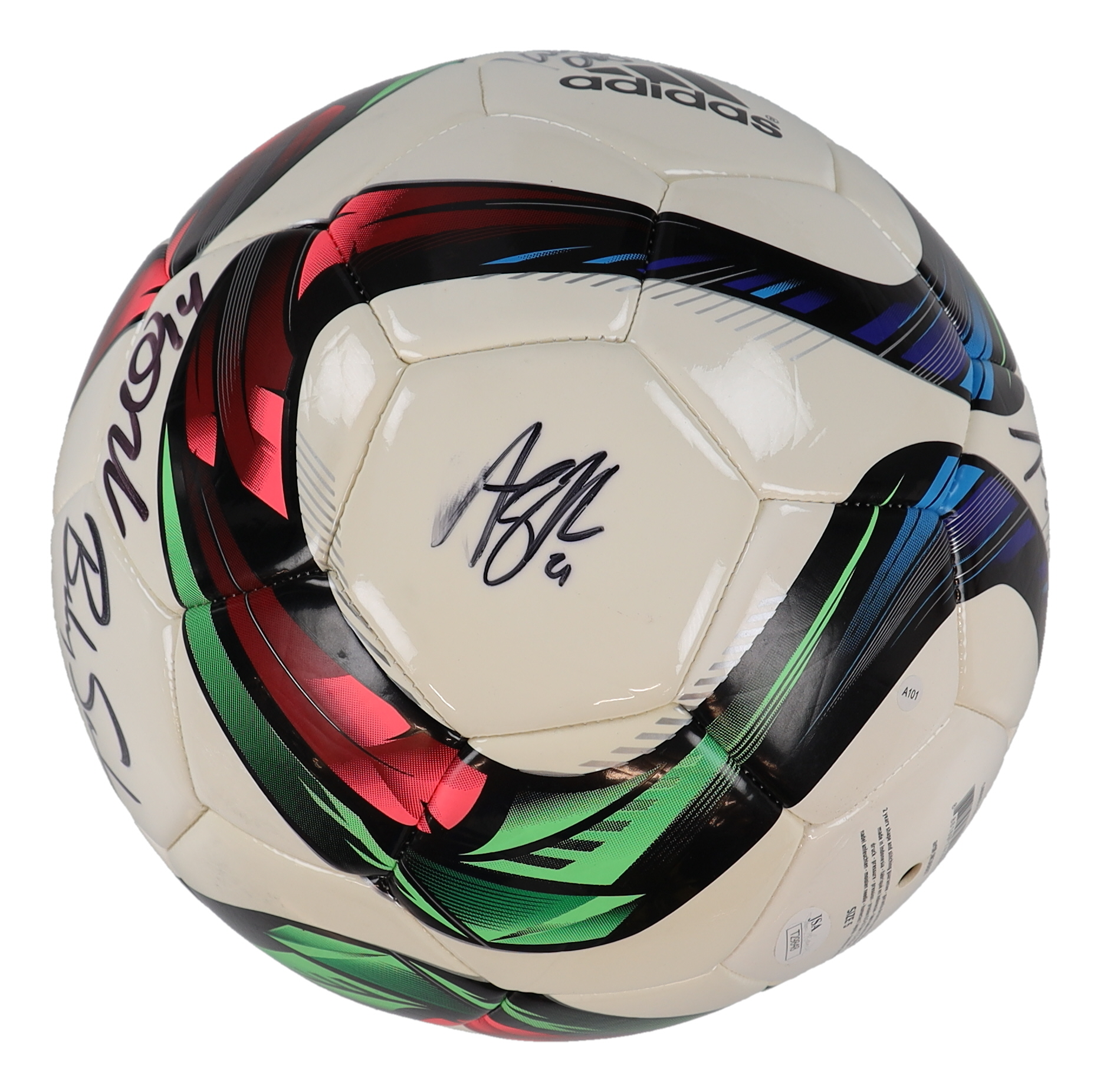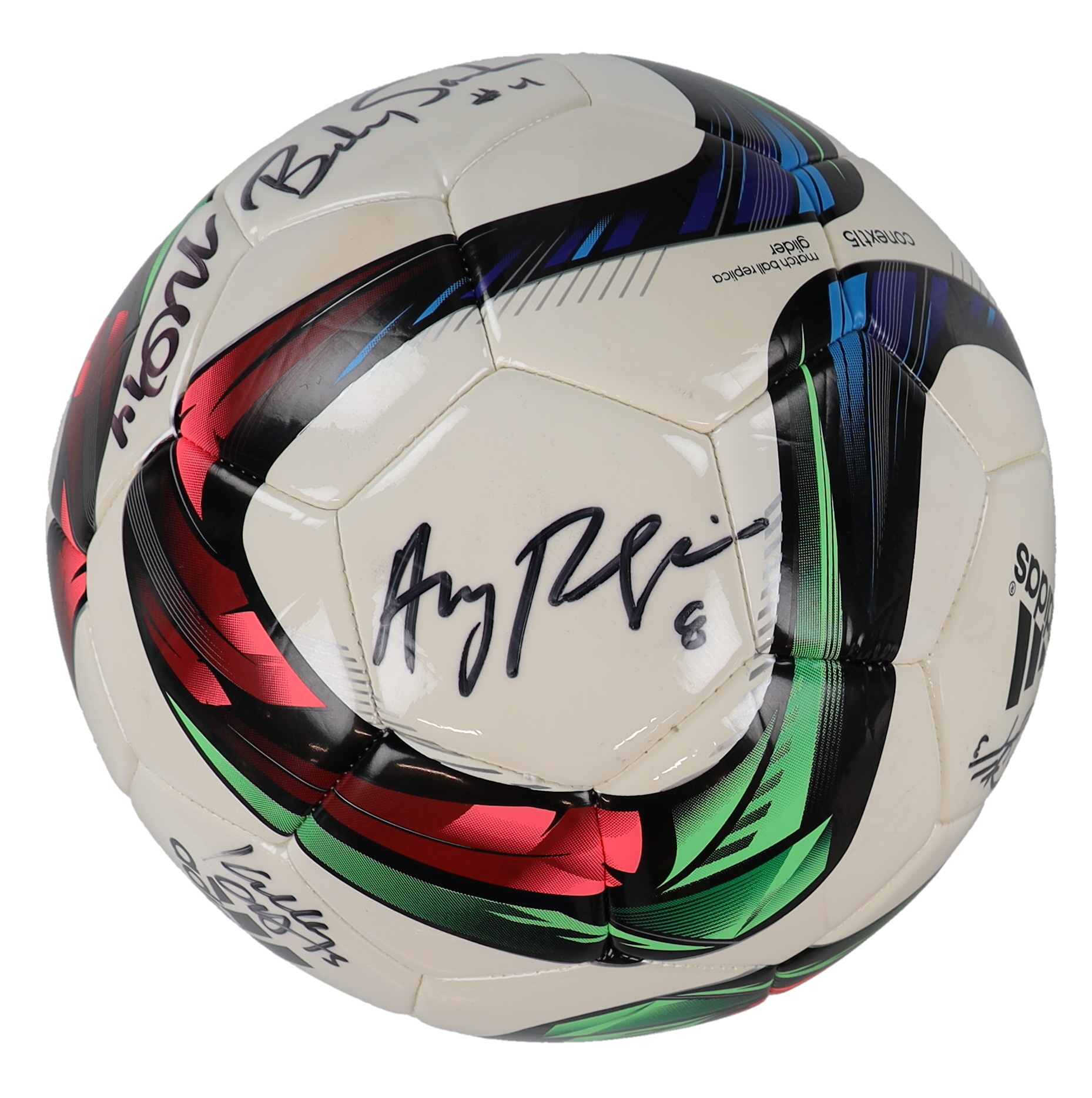 Adidas full-size soccer ball. Hand-signed Carli Lloyd, Kelly O'Hara, Becky Sauerbrunn, Amy Rodriguez, Julie Johnston, Alyssa Naeher, Shannon Boxx, Christie Rampone & Morgan Brian. Please refer to photos for more details on the condition of the item.