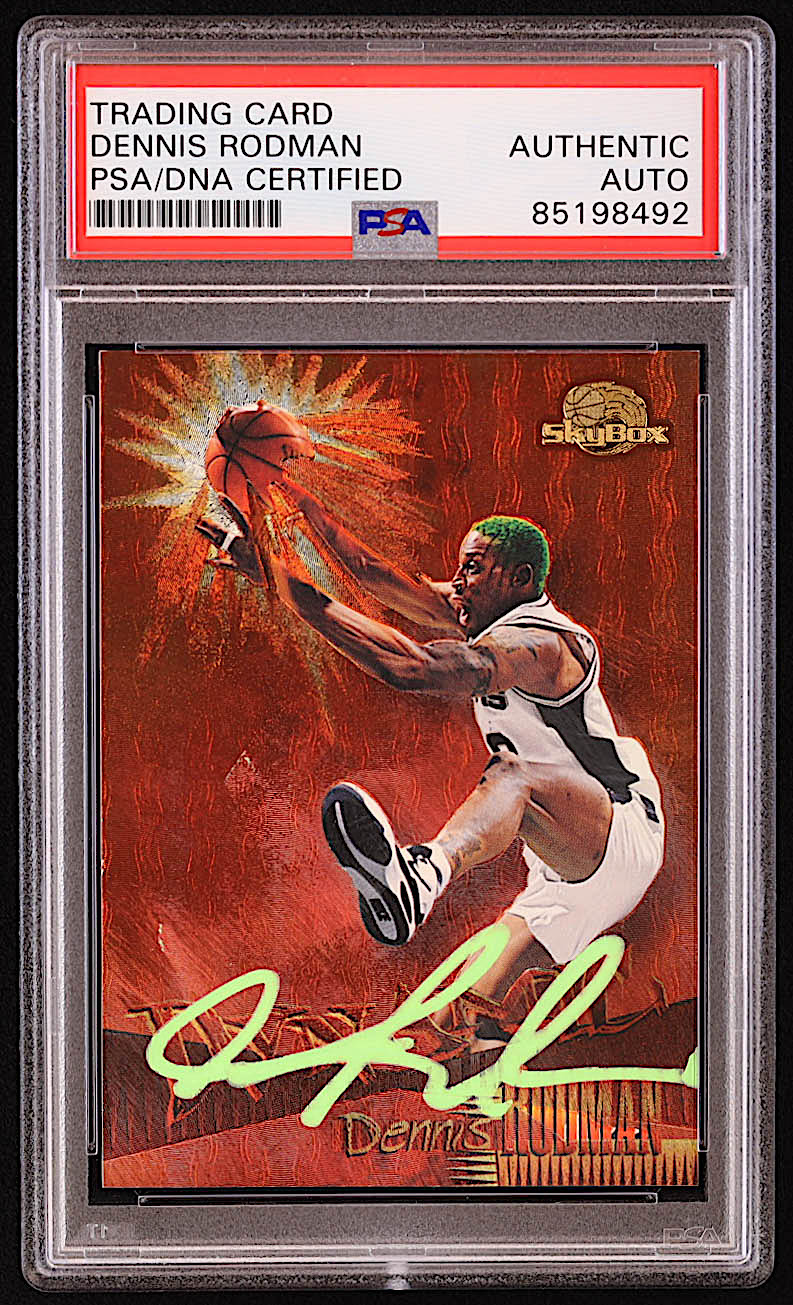 Dennis Rodman Signed 1995-96 SkyBox Premium Dynamic #D10 (PSA)