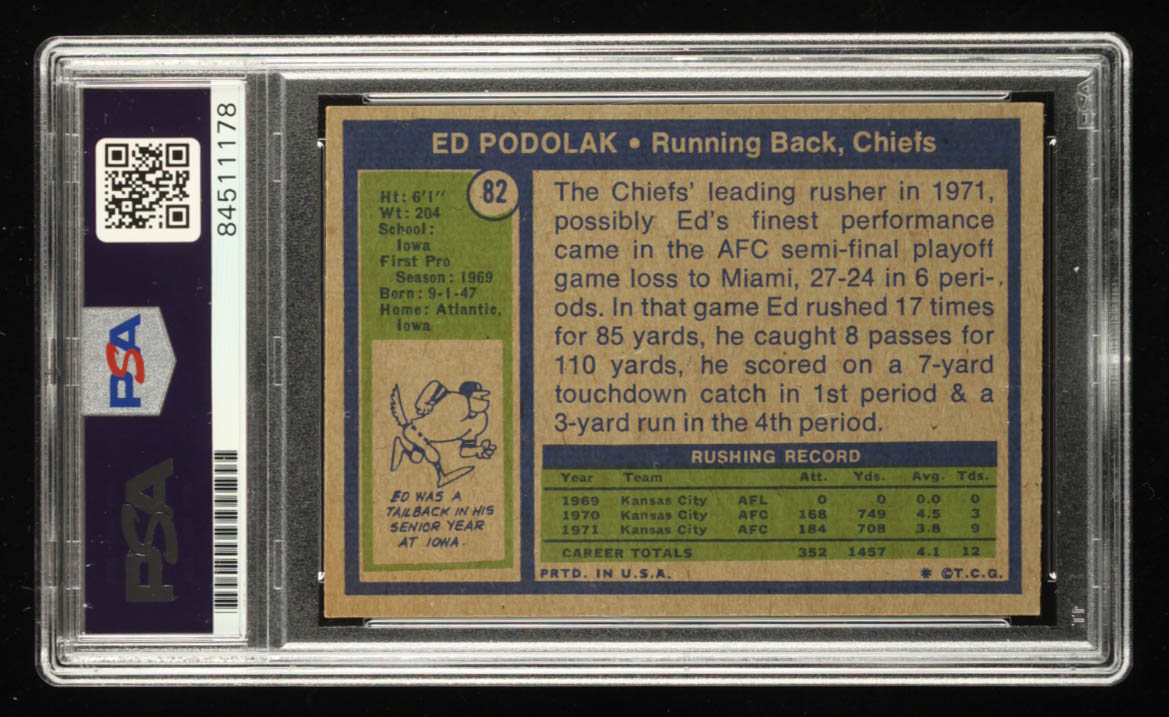 Ed Podolak Signed 1972 Topps #82 RC (PSA)