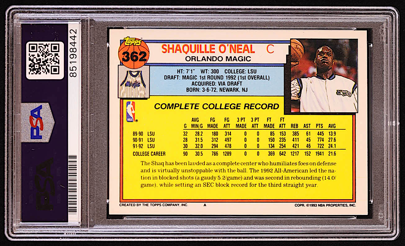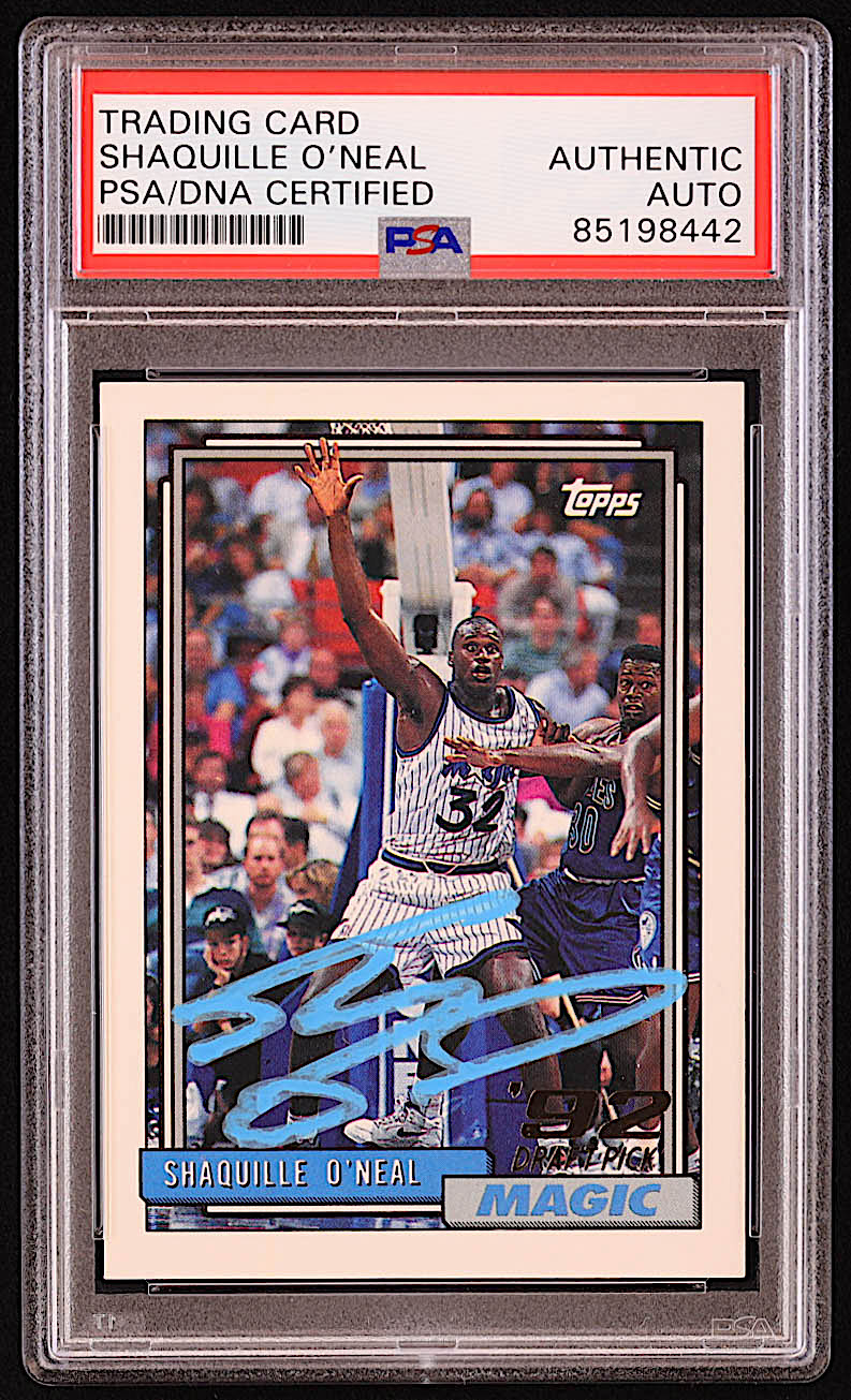 Shaquille O'Neal Signed 1992-93 Topps #362 RC (PSA)