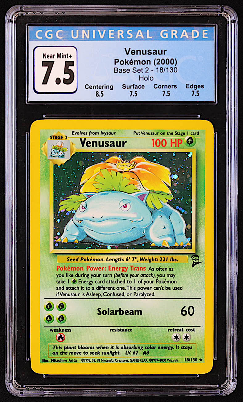 Venusaur 2000 Pokemon Base 2 Unlimited #18 Holo (CGC 7.5)