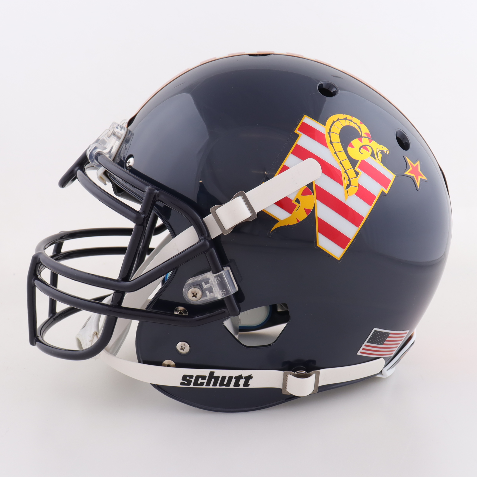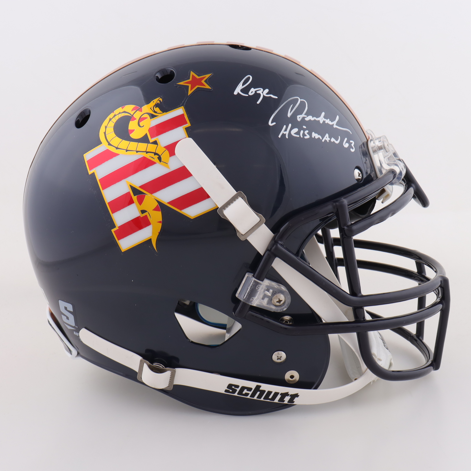 Schutt Navy Midshipmen full-size authentic on-field helmet. Hand-signed and inscribed by Roger Staubach (HOF).