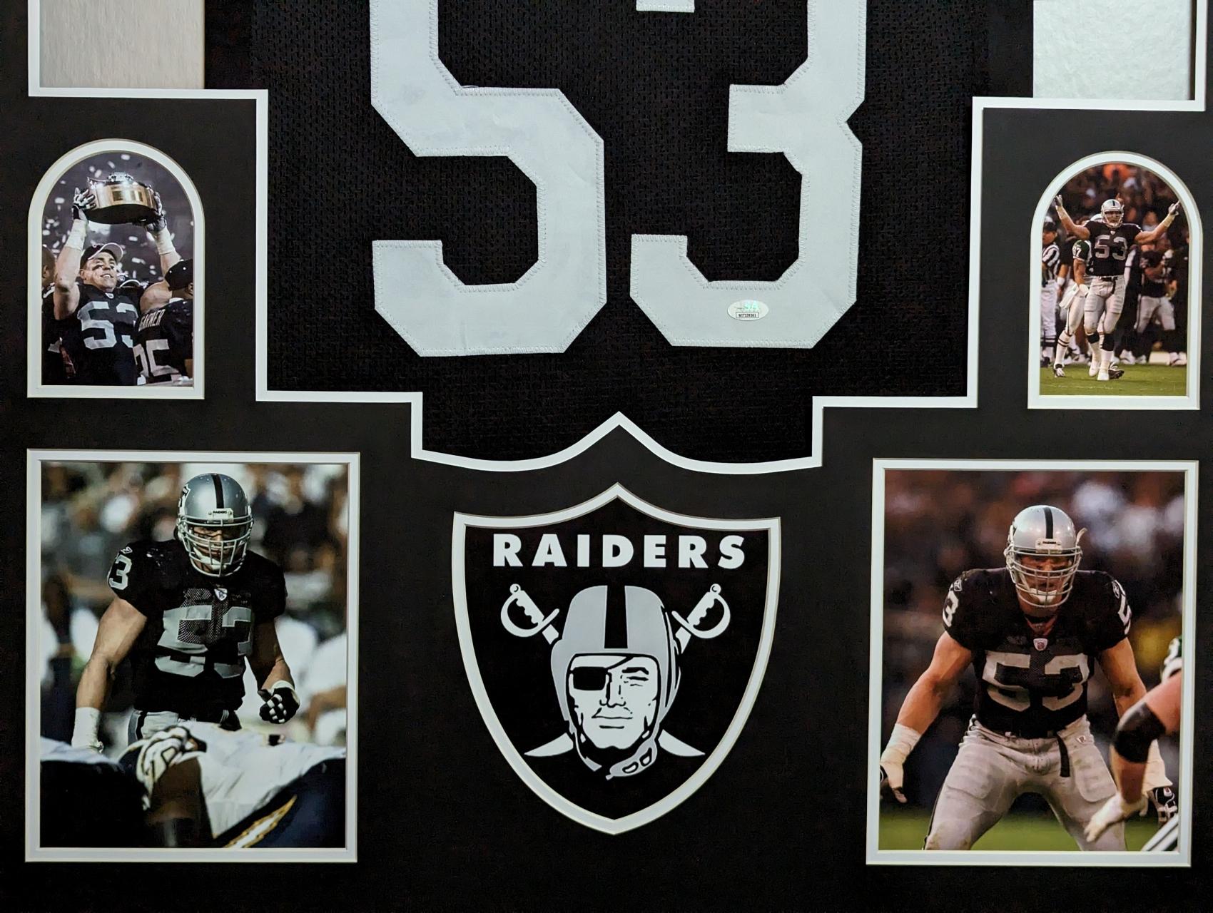 Custom frame measures 34” x 42” in size and features a jersey that has been hand-signed by Bill Romanowski.