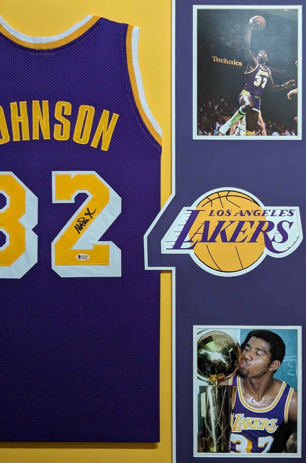 Custom frame measures 34” x 42” in size and features a jersey that has been hand-signed by Magic Johnson (HOF).