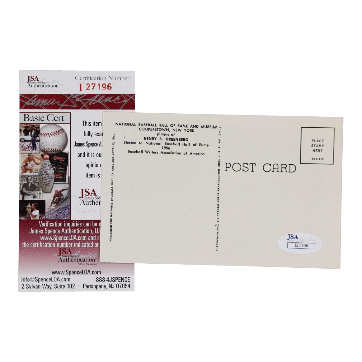 National Baseball Hall of Fame postcard has been hand-signed by Hank Greenberg (D. 1986, Detroit Tigers, HOF).