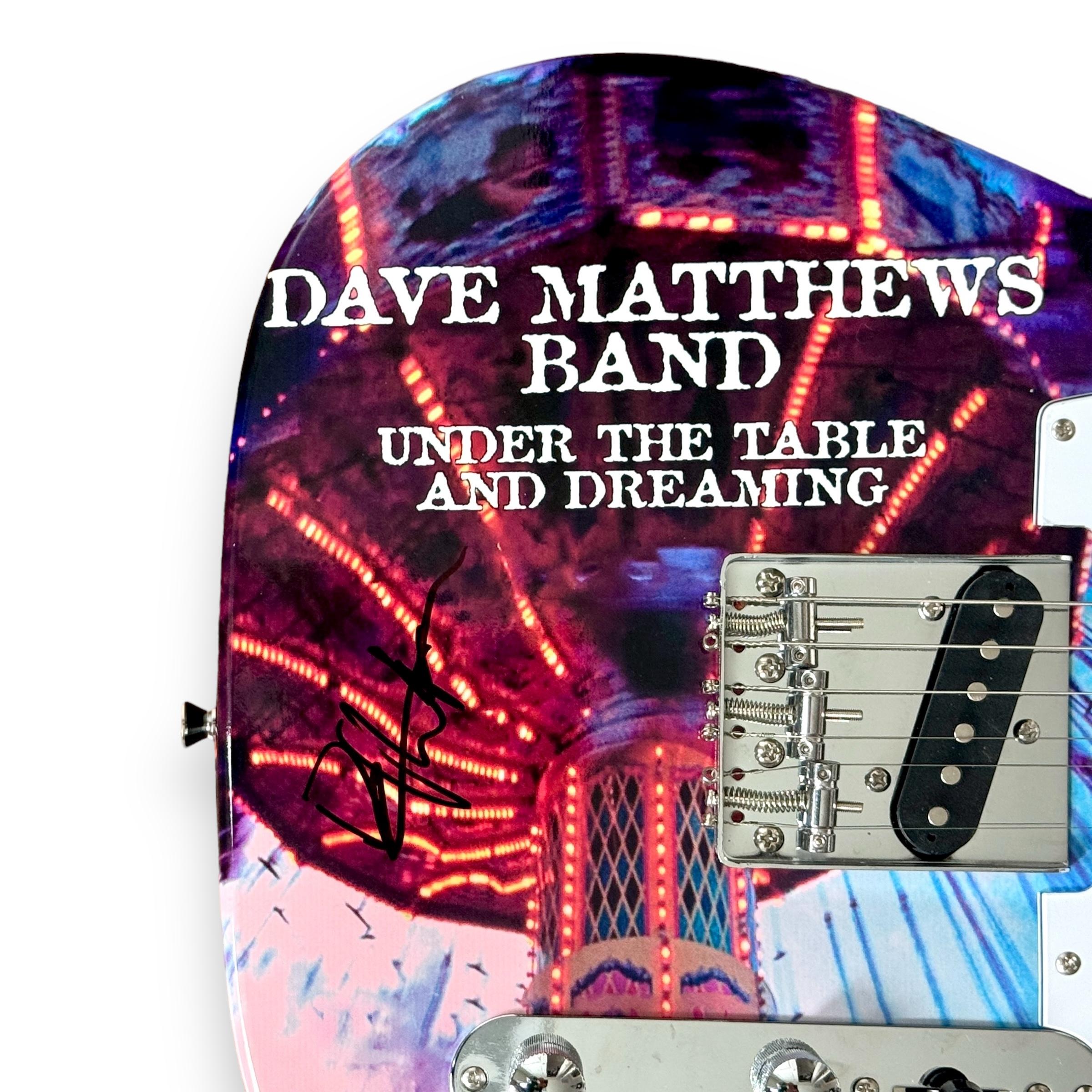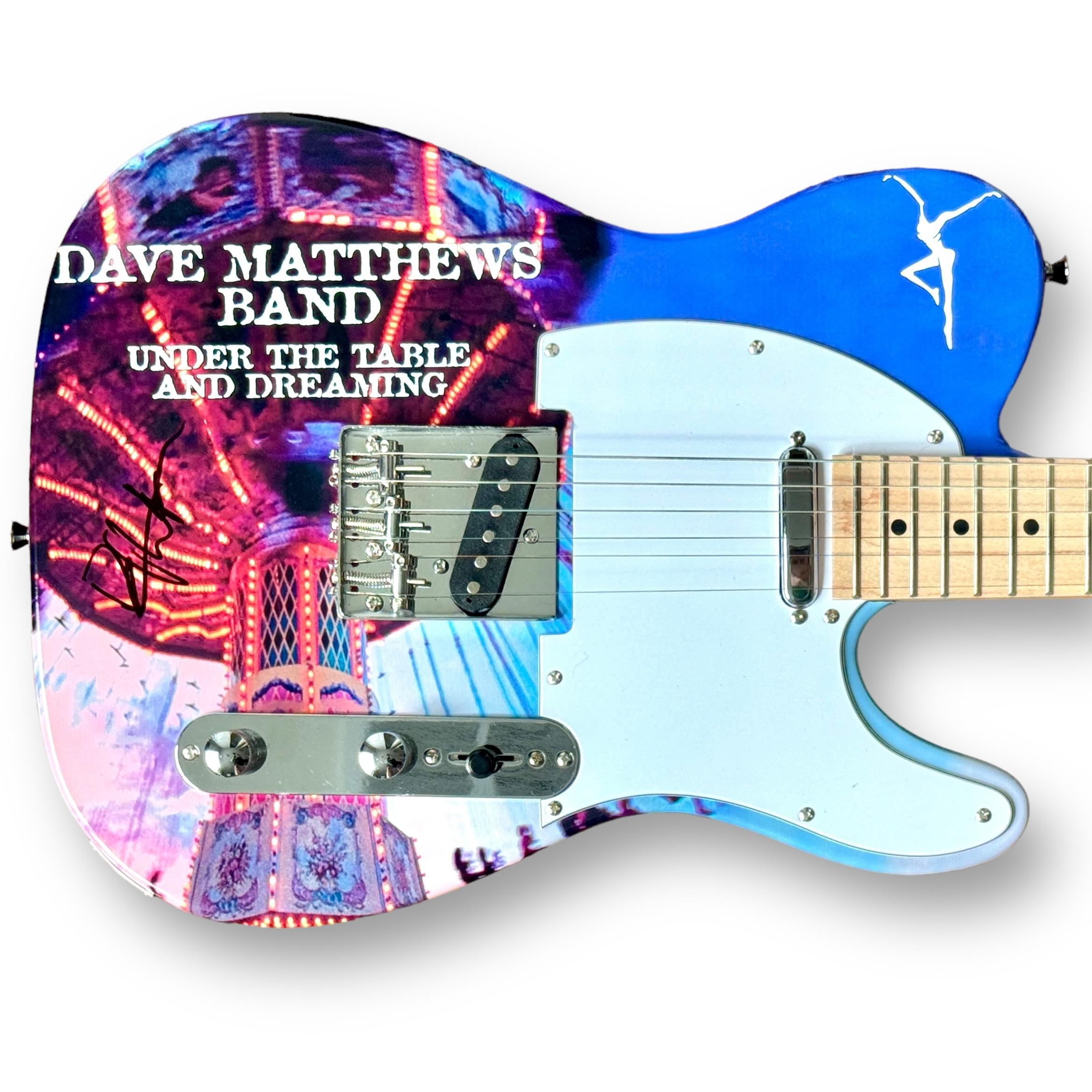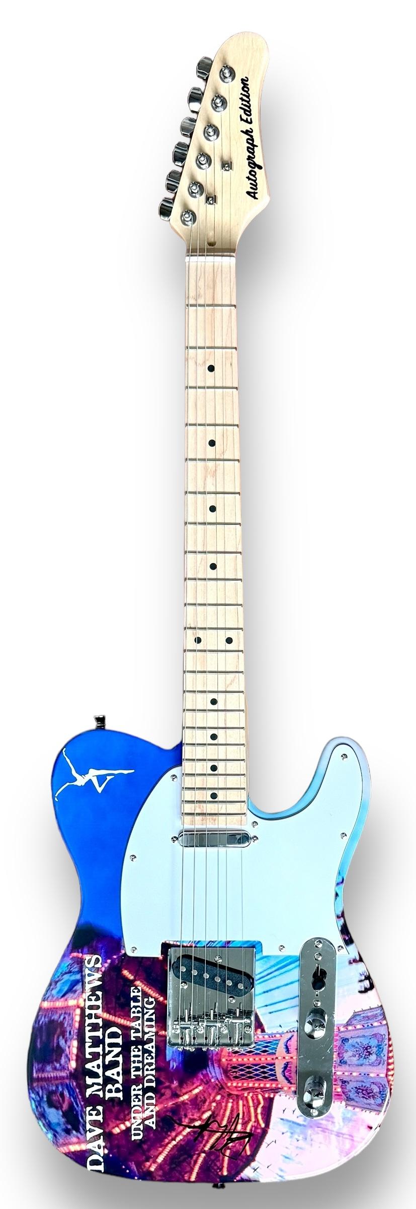 Custom electric guitar measures approximately 39" in length and has been hand-signed on the guitar body by Dave Matthews.