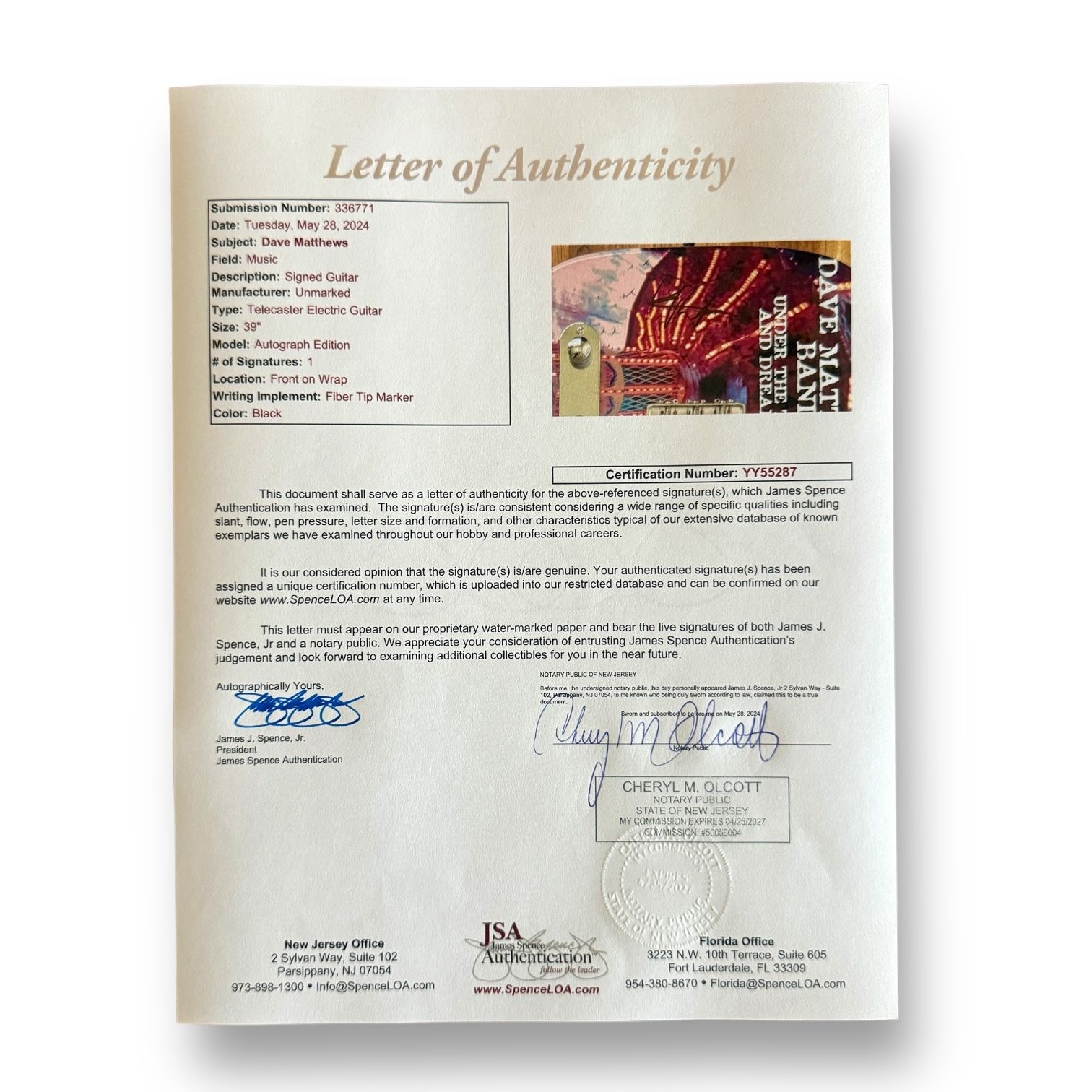 Dave Matthews Signed Electric Guitar (JSA)