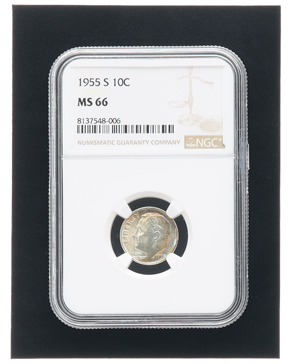 1955-S Roosevelt Silver Dime - Rainbow Toning (NGC MS66)
