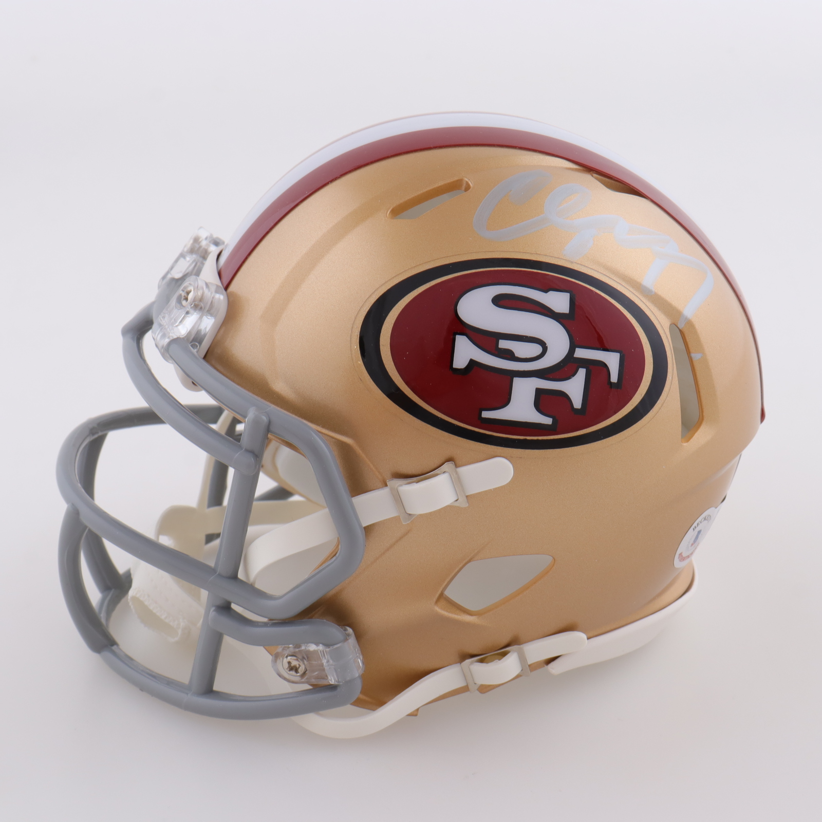 Riddell San Francisco 49ers Speed mini helmet. Hand-signed by Christian McCaffrey.