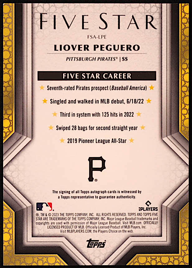 Liover Peguero 2023 Topps Five Star Autographs Blue #FSALPE RC #10/25