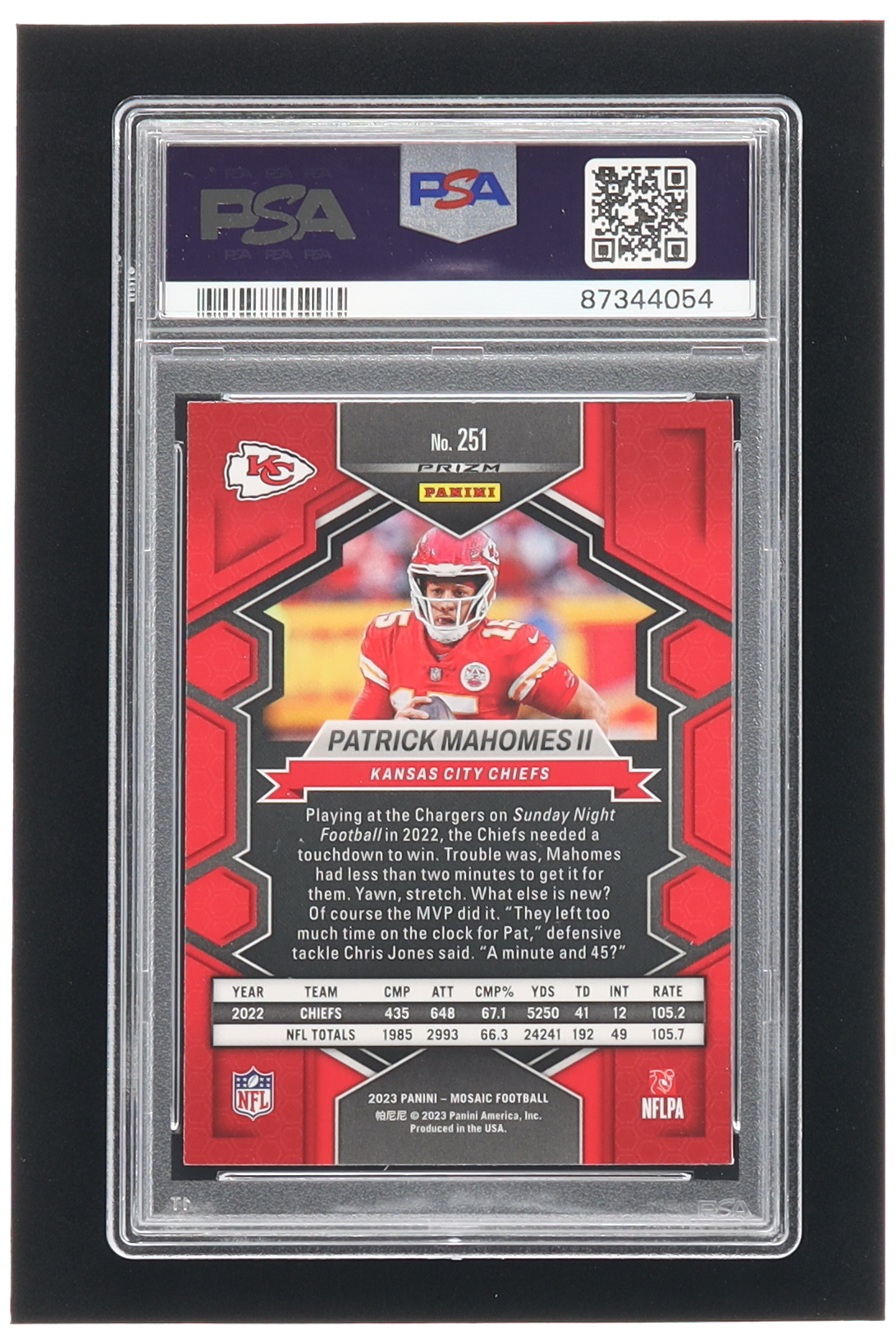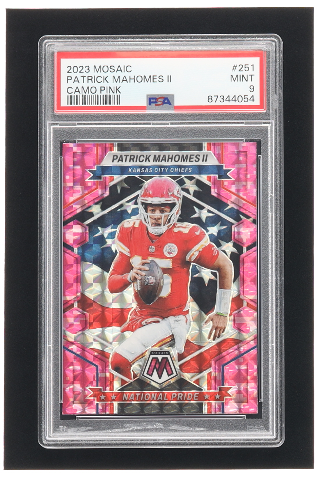 Patrick Mahomes II 2023 Panini Mosaic Mosaic Camo Pink #251 NP (PSA 9)