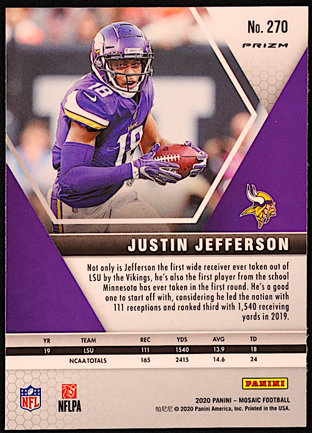 Justin Jefferson 2020 Panini Mosaic Mosaic Camo Pink #270 DEB RC