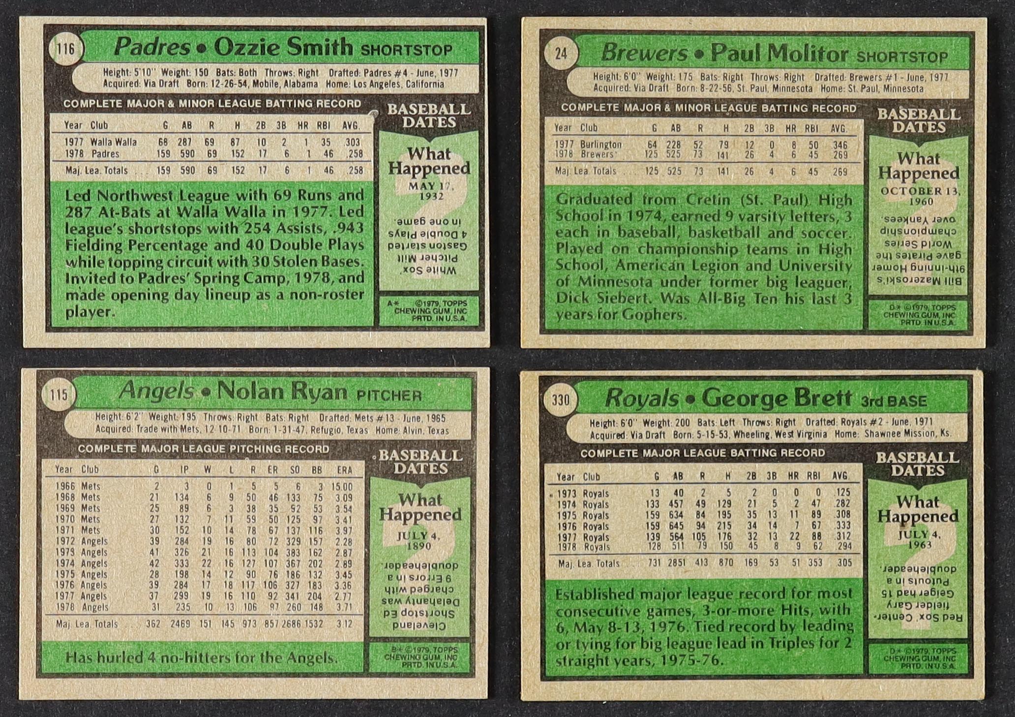 1979 Topps Baseball Complete Set of (726) Cards with Paul Molitor #24, Ozzie Smith #116, Nolan Ryan #115, Pete Rose #650