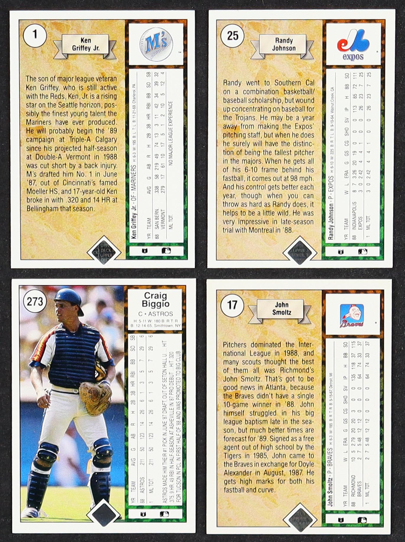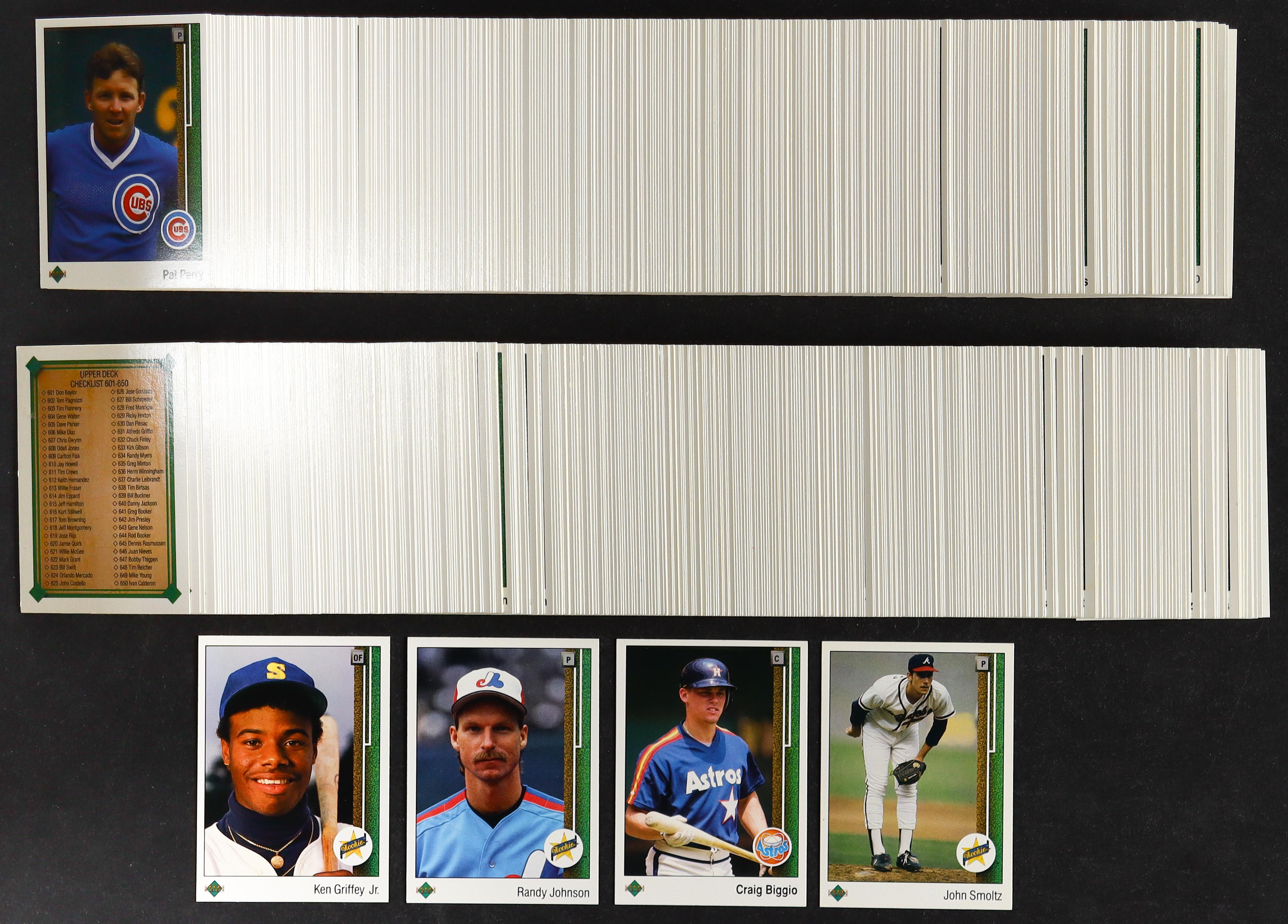 1989 Upper Deck Baseball Card Complete Set with (800) Cards with Craig Biggio #273, Randy Johnson #25 RC, John Smoltz #17 RC, Ken Griffey Jr . #1 RC