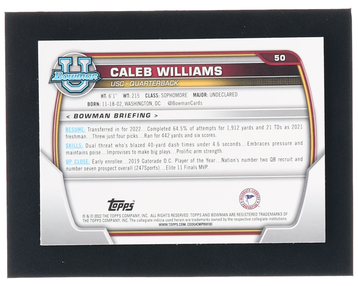 Caleb Williams 2022 Bowman Chrome University Pink Refractors #50 RC