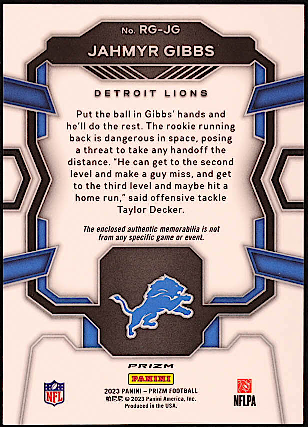 Jahmyr Gibbs 2023 Panini Prizm Rookie Gear Prizms Pink #7 RC