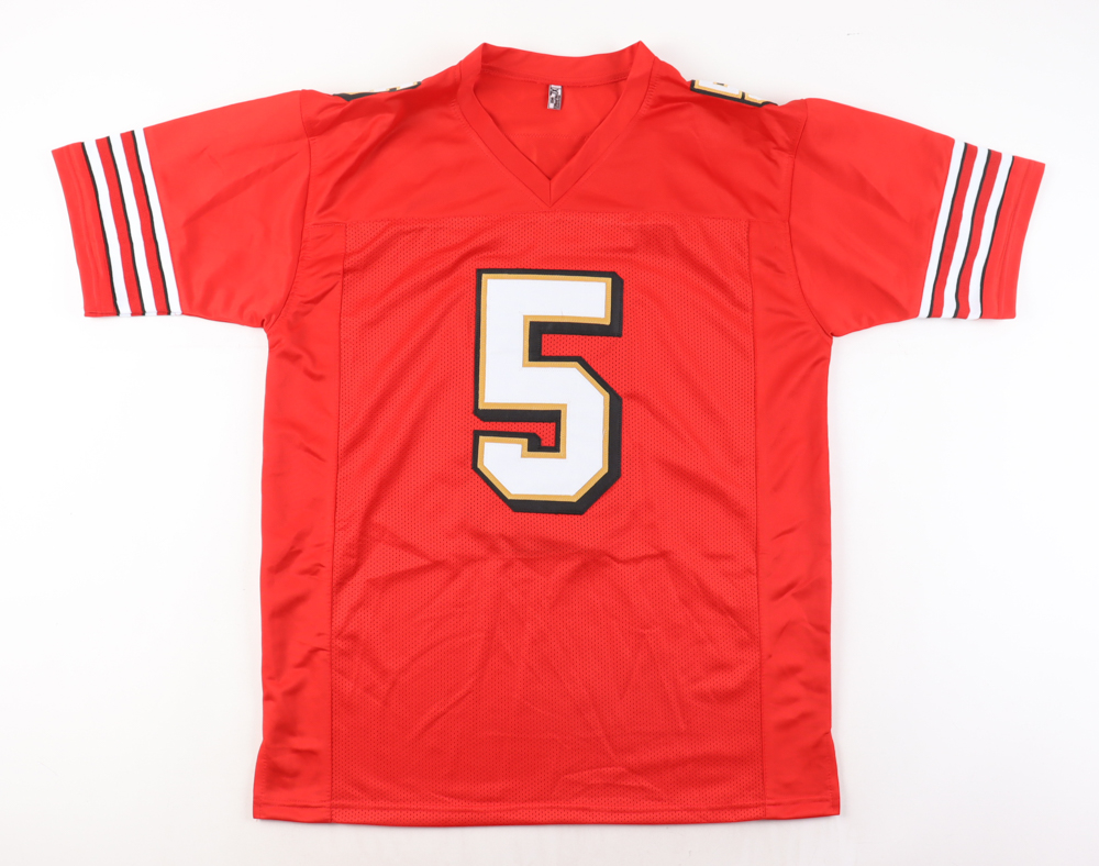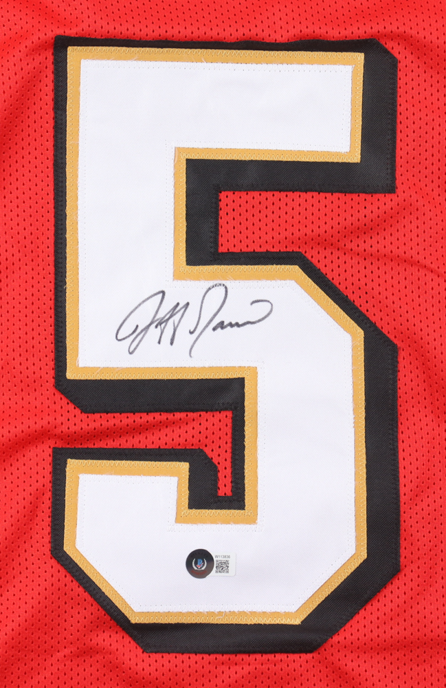 Custom jersey with everything sewn on, size XL. Hand-signed by Jeff Garcia.