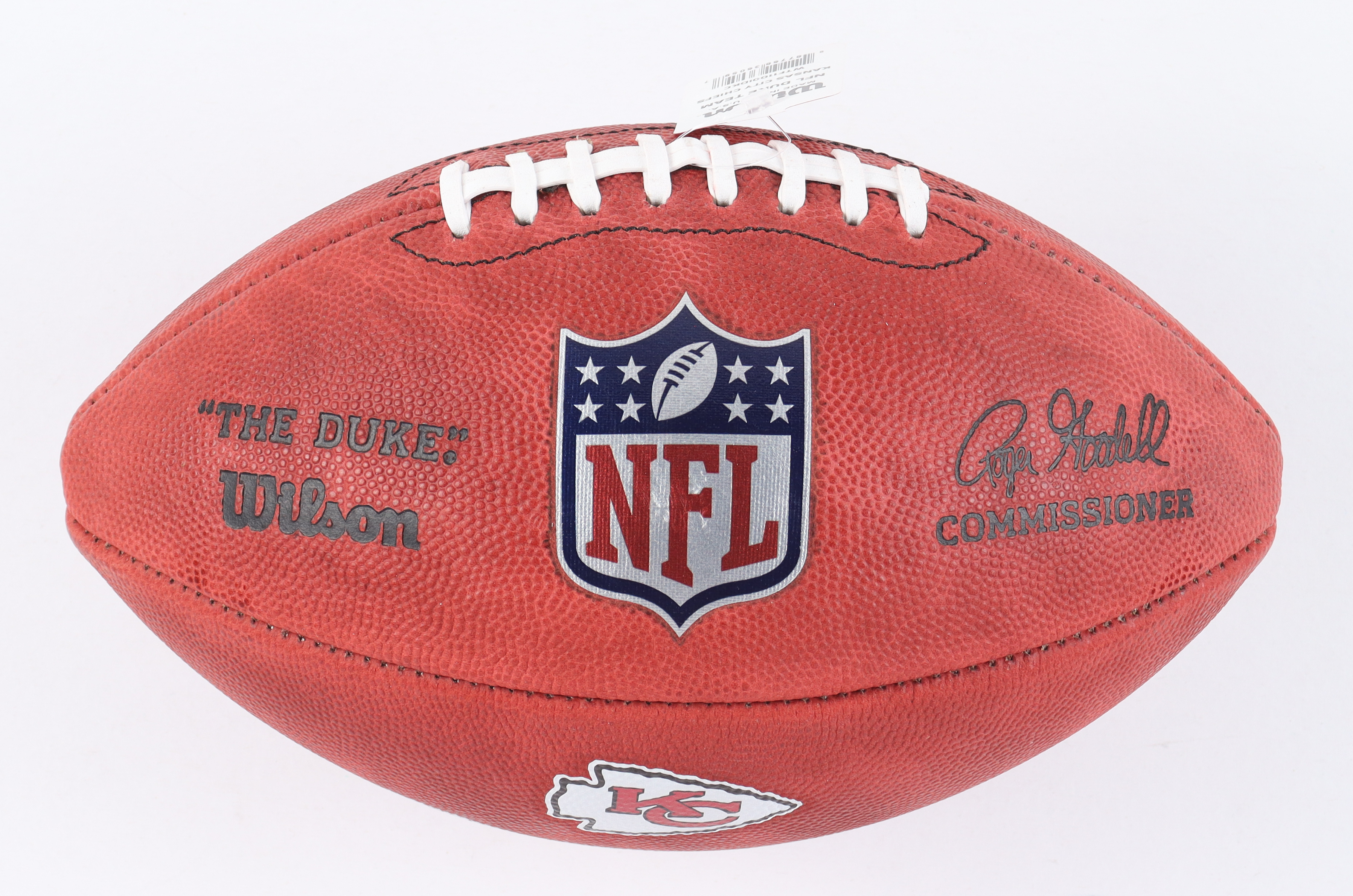 Wilson Official NFL "The Duke" Game Ball Kansas City Chiefs logo football. Hand-signed by Patrick Mahomes.