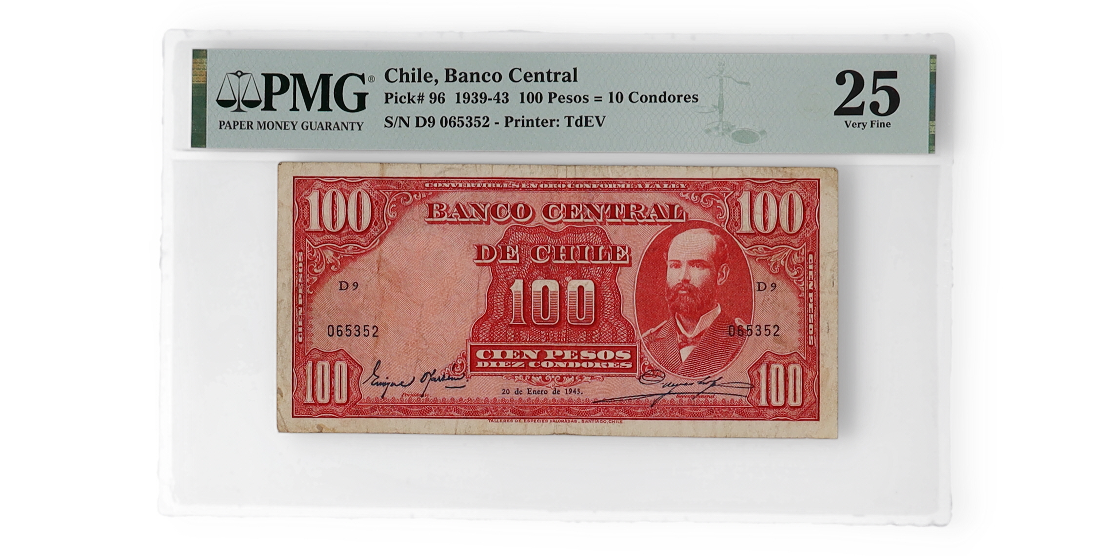 1939-43 Chile, Banco Central - 100 Pesos = 10 Condor (PMG VERY FINE 25)